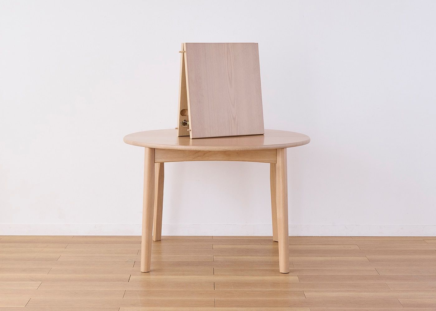 テーブルの天板内にすっきり収まるv01折畳み中天板(NA)。置き場所に悩む必要がなく、準備や片付けもスムーズです。必要なときだけ広げられるため、普段は省スペースで使え、来客時にもすぐ対応できます。