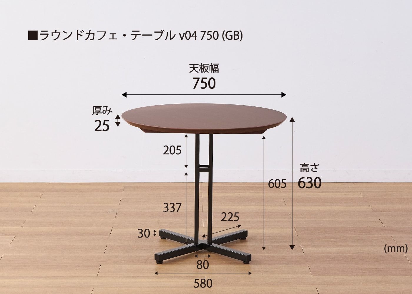簡単にご自宅でもカフェ気分を楽しめる、スタイリッシュなデザインのラウンドカフェ・テーブルv04 750 (GB)。コンパクトなソファダイニングスタイルの空間を実現する、天板高さを630mmに抑えたロータイプのテーブルです。