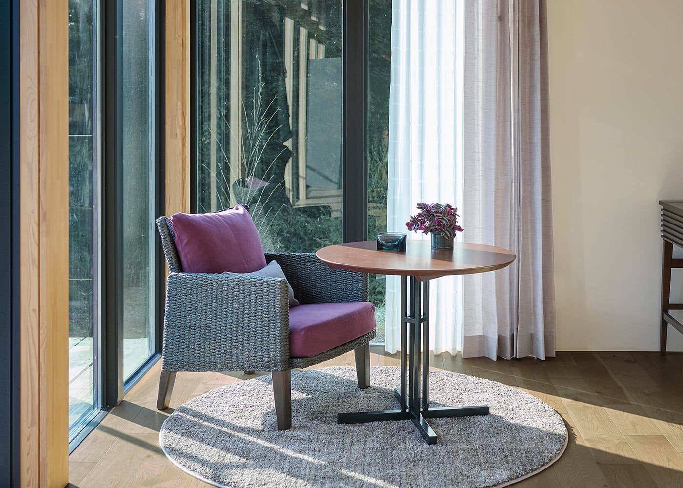 柔らかな曲線と美しい木目が映えるデザインで、空間に優しく馴染みます。どの向きからでも座りやすく、木の温もりに包まれながら、落ち着いた時間を過ごしてみてください。