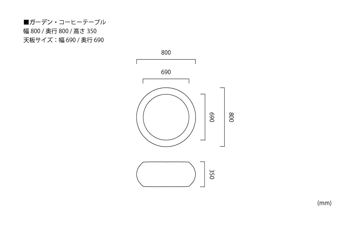 屋外にレイアウトしやすい直径690mm