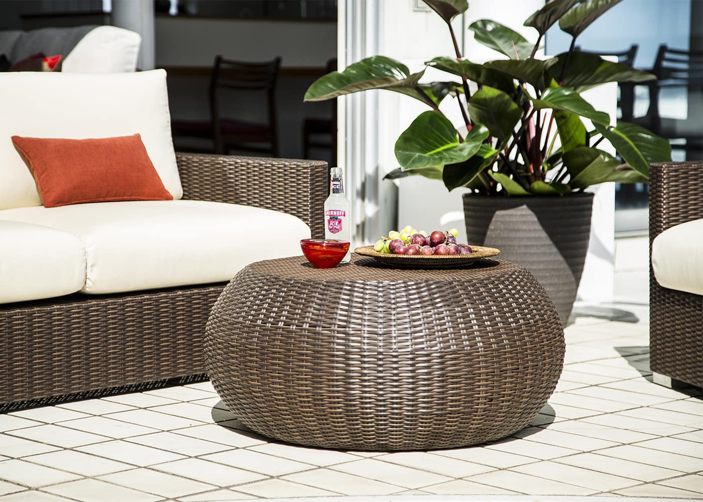 ガーデン・コーヒーテーブルがあれば、ご自宅でも簡単にリゾート気分を満喫できます。丁寧に編み込んだ素材がまるで自然素材のようなリラックス感を生み、非日常的な屋外を作ってくれるでしょう。