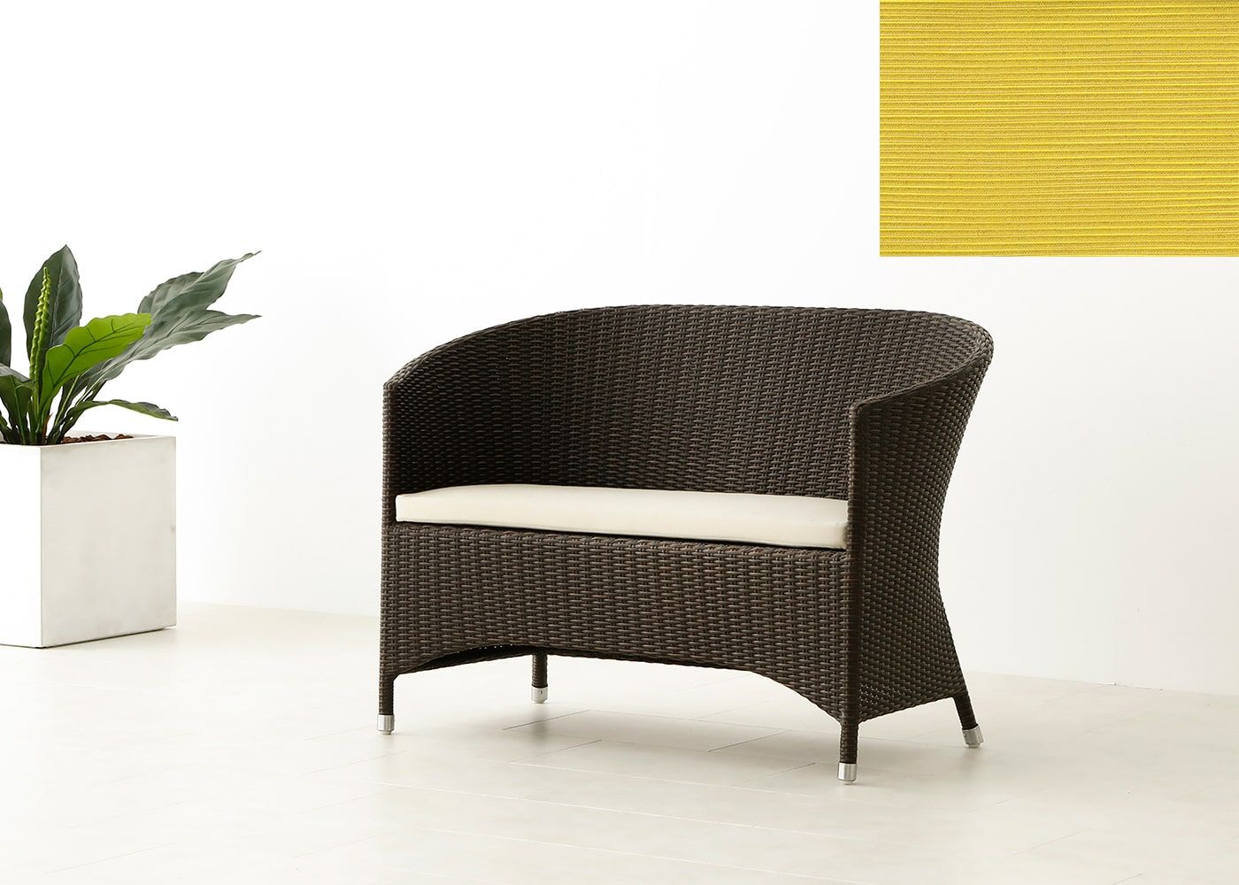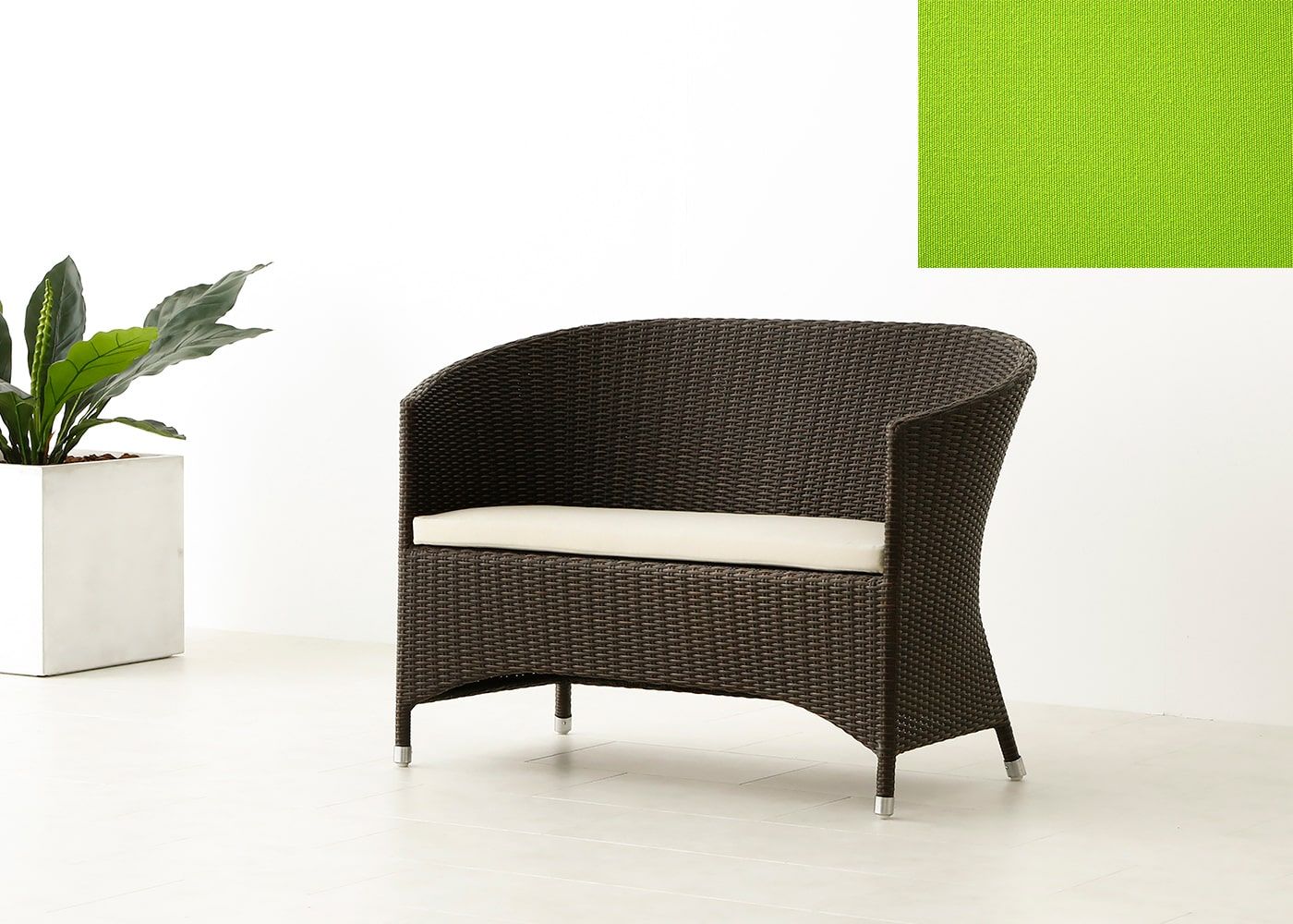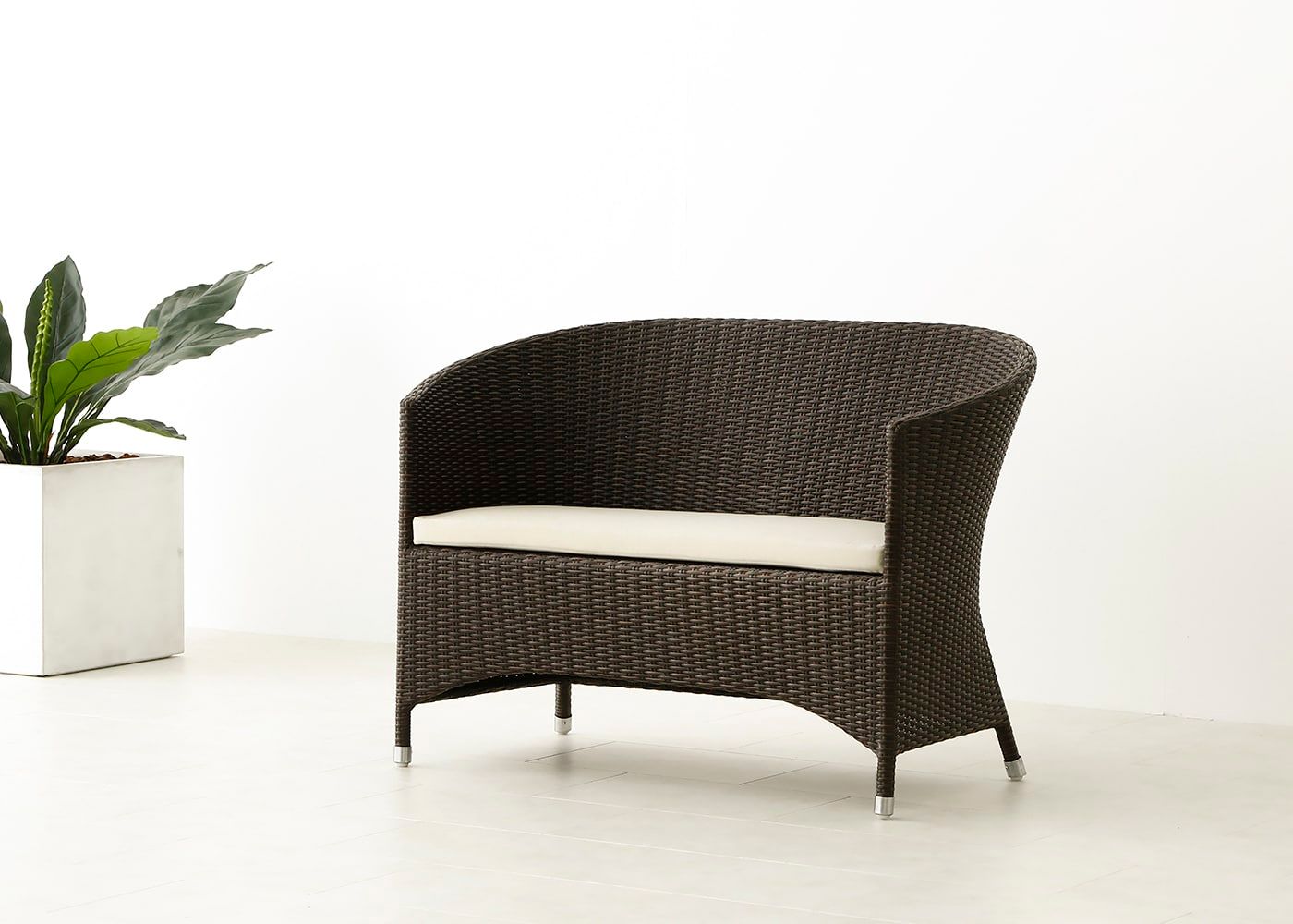 貝のような美しい曲線を描き、存在感のある雰囲気が魅力のガーデン・ラウンジチェア 2P。強い日差しや風雨による劣化を気にせず、屋外に一年中設置したままでご使用頂けます。