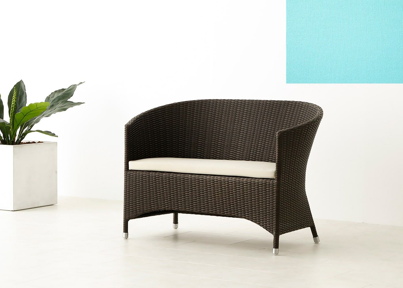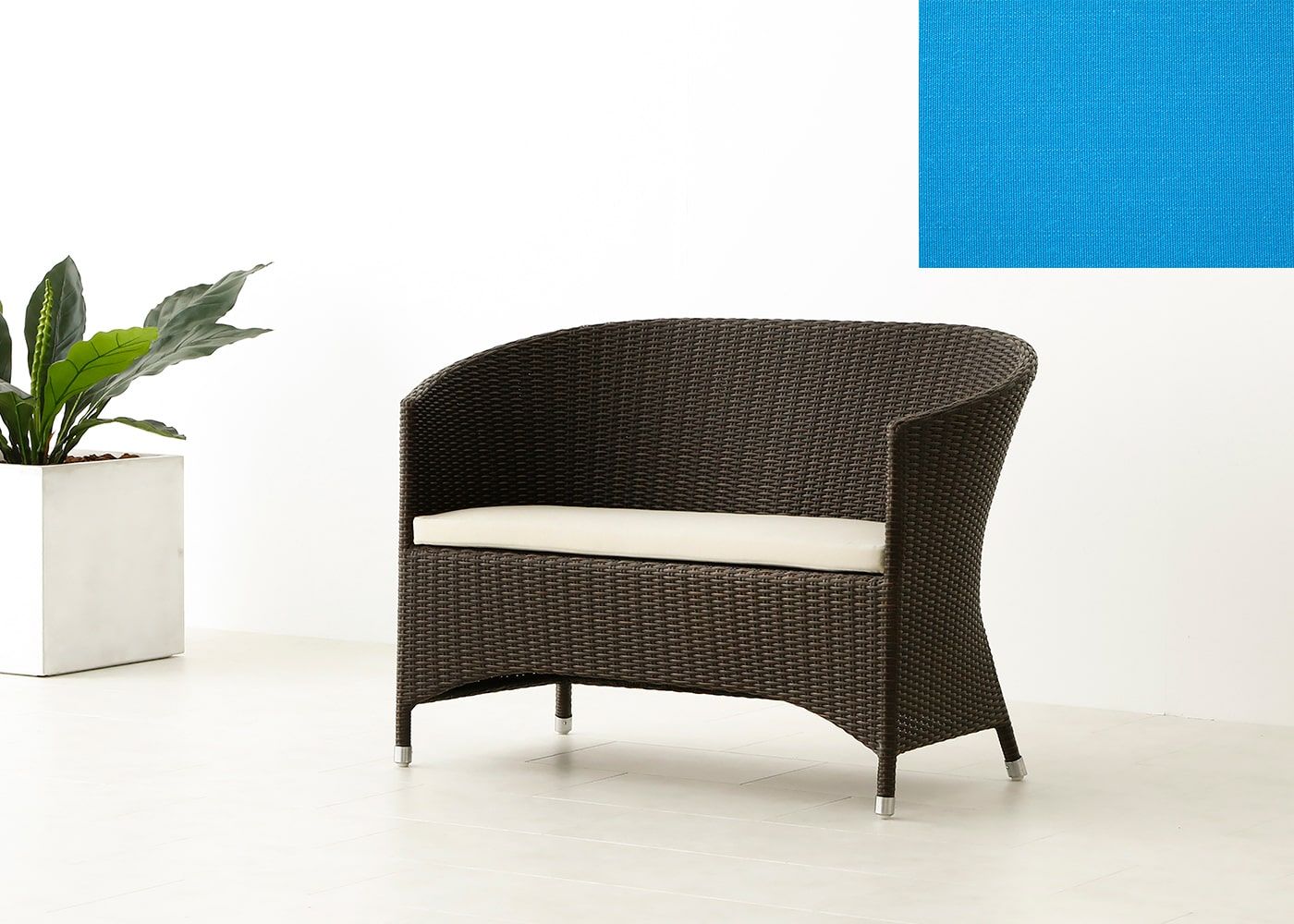 コーヒー・テーブルと合わせると横並びで会話を楽しむことができます。立体感のある形状が奥行きを生み出し、テラスやバルコニー、庭の雰囲気に自然に溶け込みます。(写真はTPブルー)
