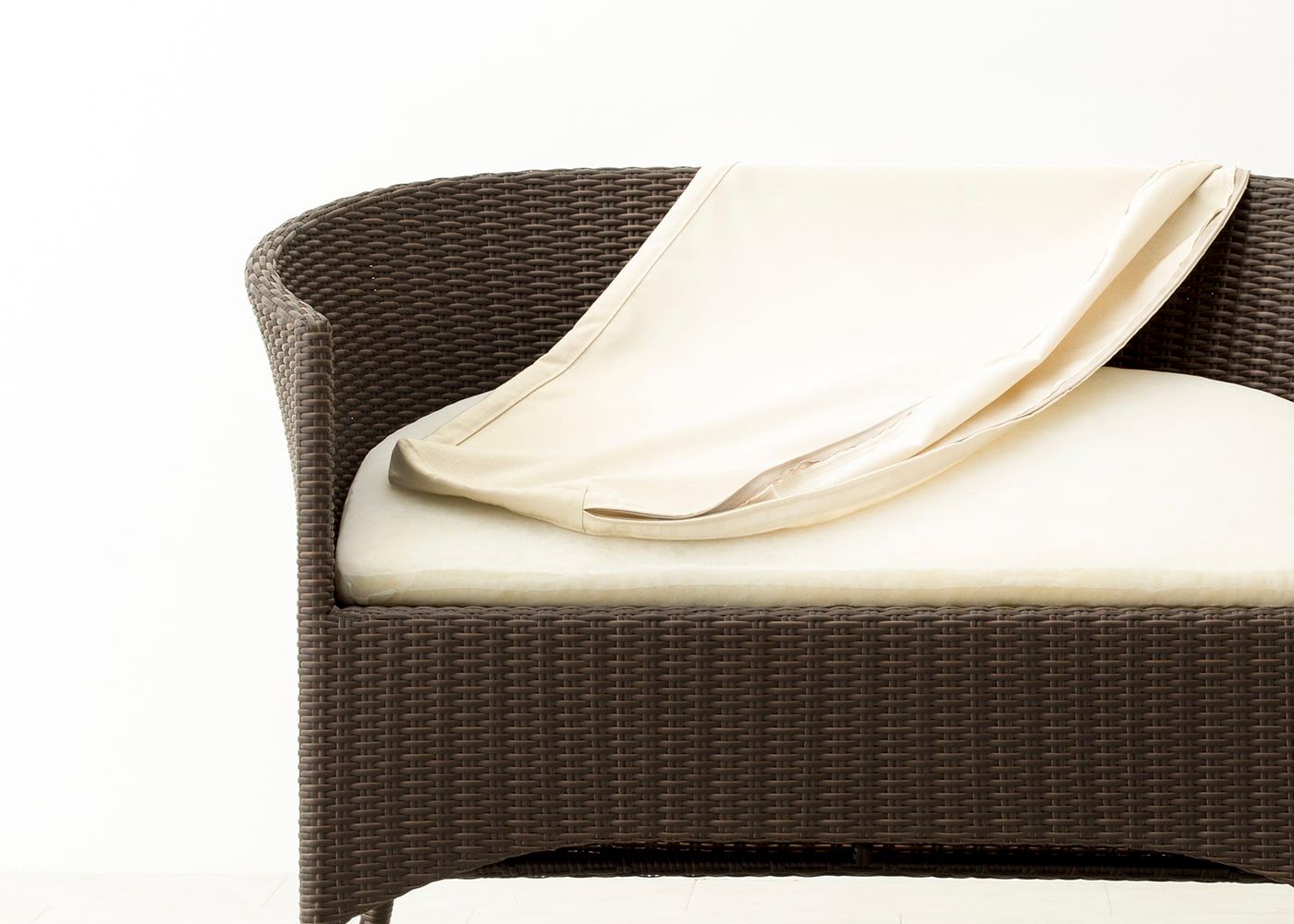 カラーコーディネートが楽しめるガーデン・ラウンジチェア 2P。シートカバーを素材の色に合わせたブラウン系でまとめると、落ち着きのある大人な雰囲気になります。(写真はTPチョコレート)