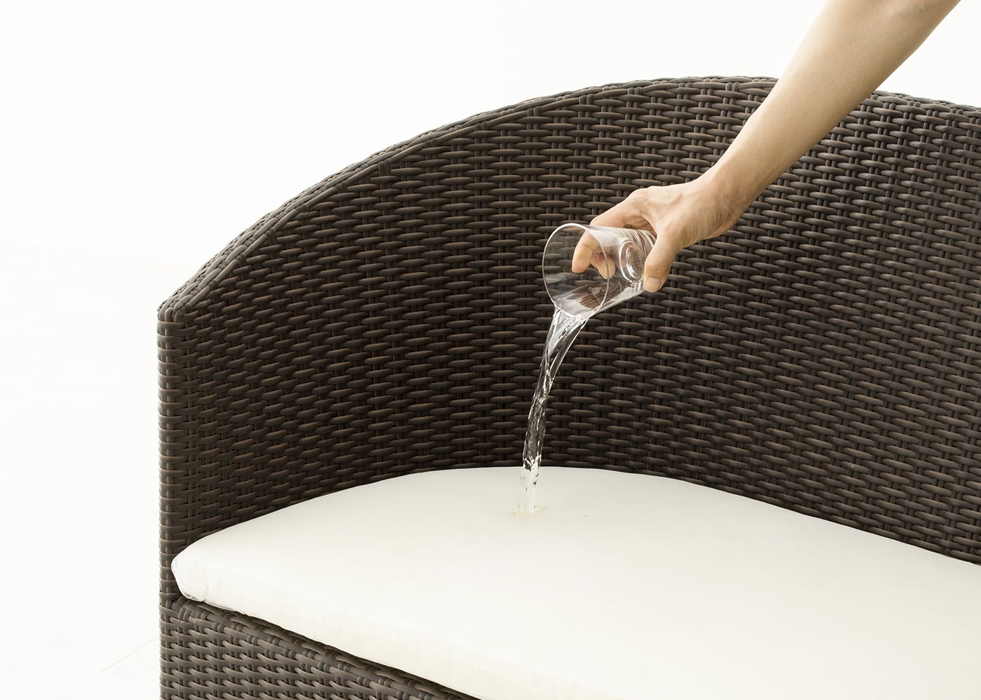 屋外用に開発された特殊ウレタン「クイック・ドライ・フォーム」を使用。通水性と通気性に優れ、乾きやすく、雨に濡れても劣化しにくい素材。防カビ加工により、一年中屋外で使用可能です。