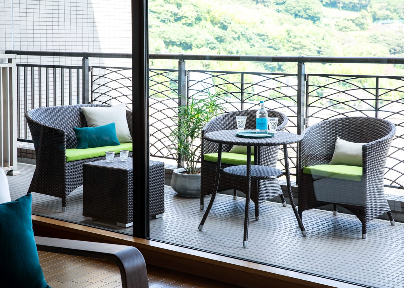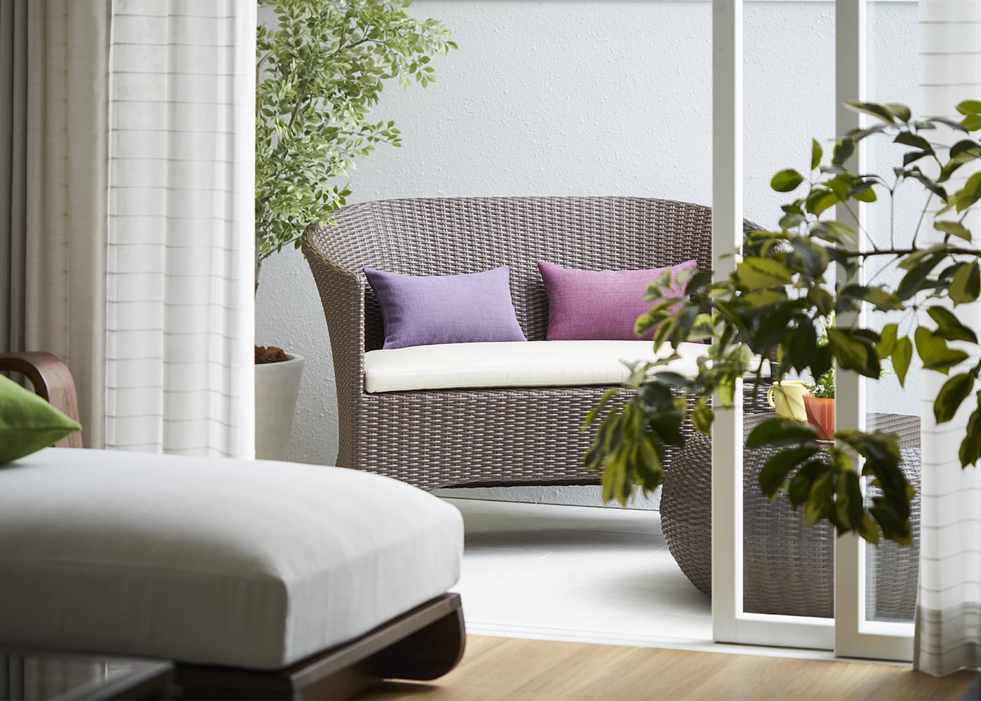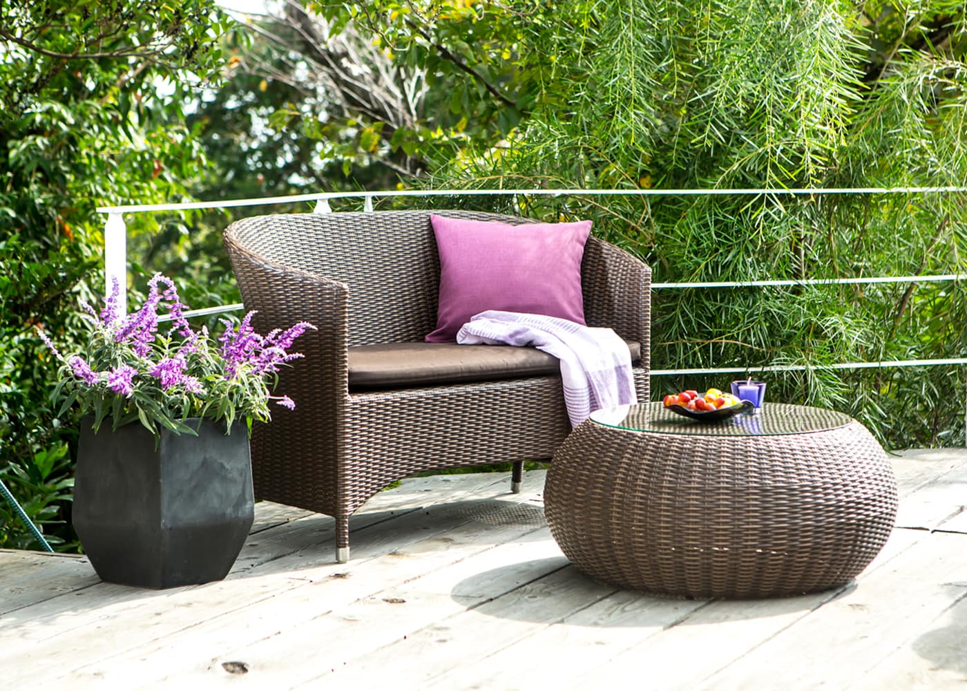 都会の限られた屋外空間にもなじむガーデン・ラウンジチェア 2P。リビングからつながるバルコニーに置けば、気分を切り替えられる心地よい場所になります。