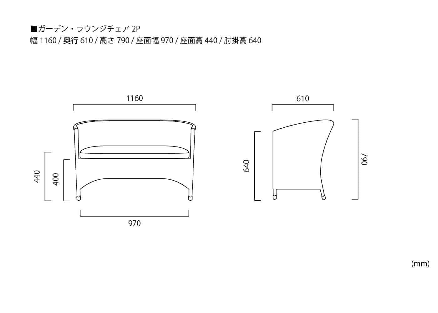 幅1160 / 奥行610 / 高さ790 / 座面高440