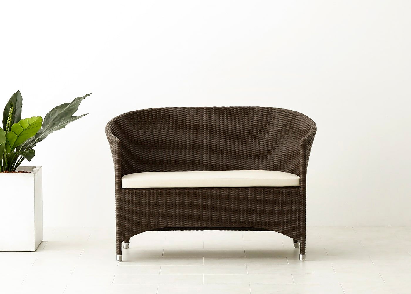 貝のような美しい曲線を描き、存在感のある雰囲気が魅力のガーデン・ラウンジチェア 2P。強い日差しや風雨による劣化を気にせず、屋外に一年中設置したままでご使用頂けます。