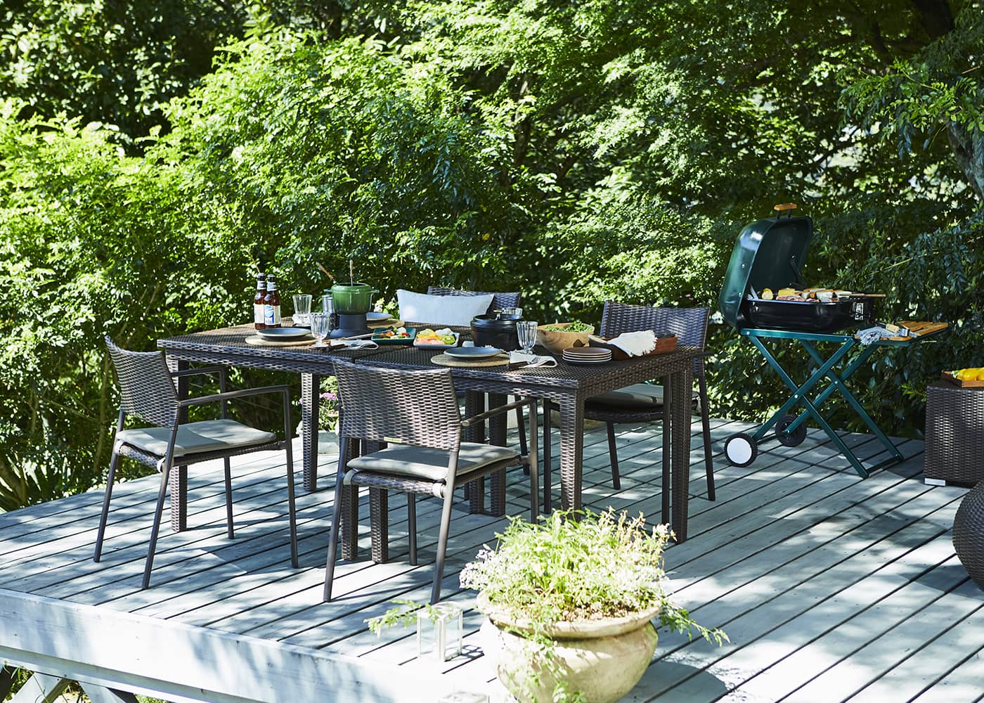 ガーデンテーブルと組み合わせれば、リゾートレストランのような雰囲気を実現できます。