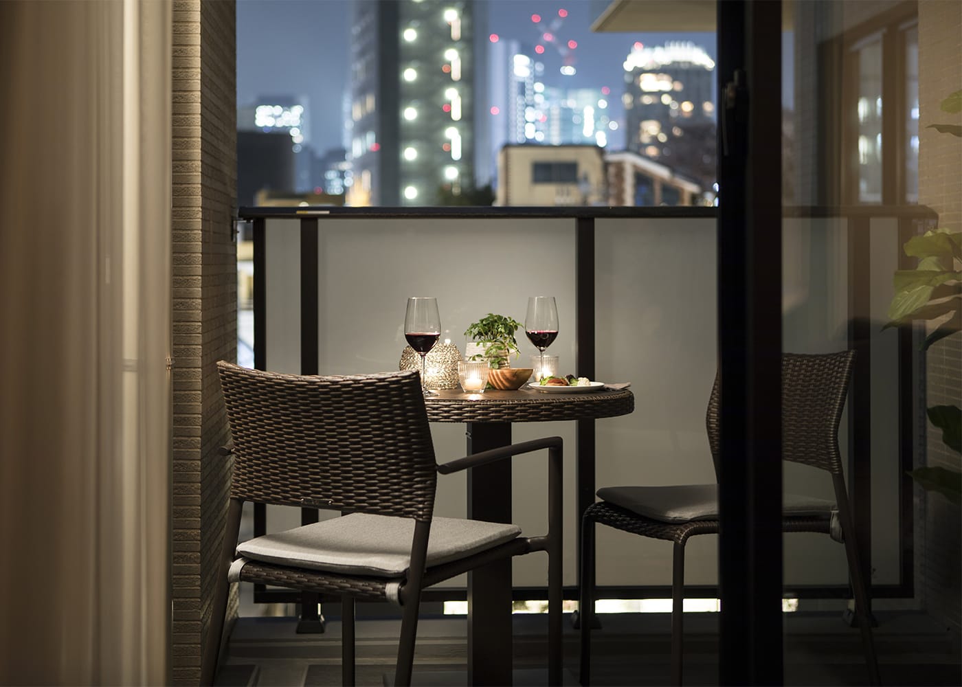 光輝く夜景を、屋外チェアで楽しんでみてはいかがでしょうか。相性抜群の