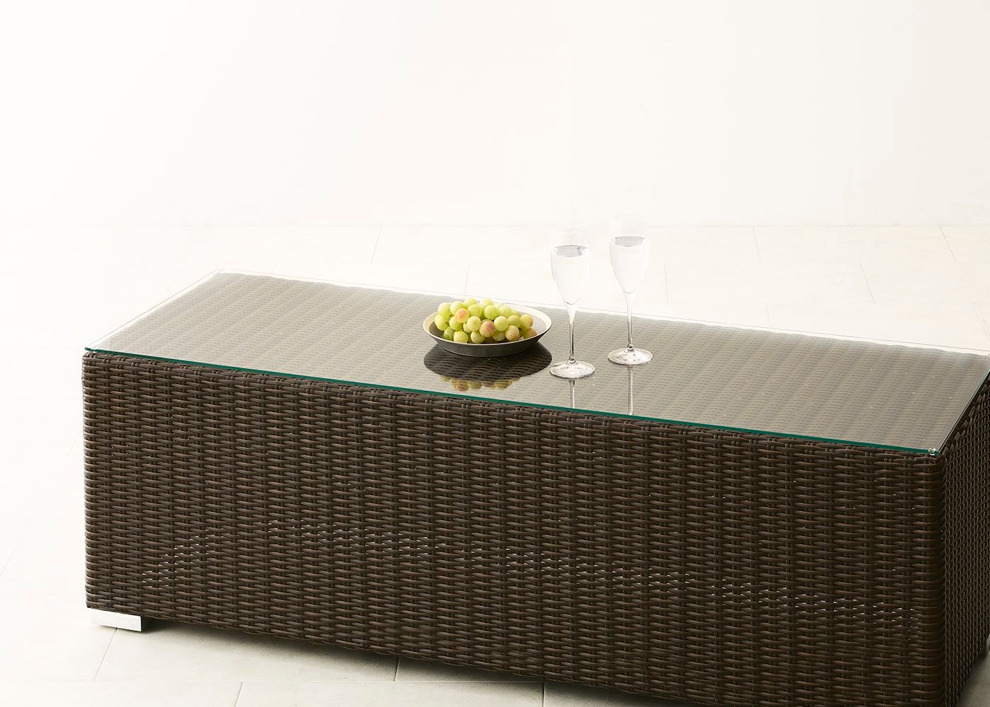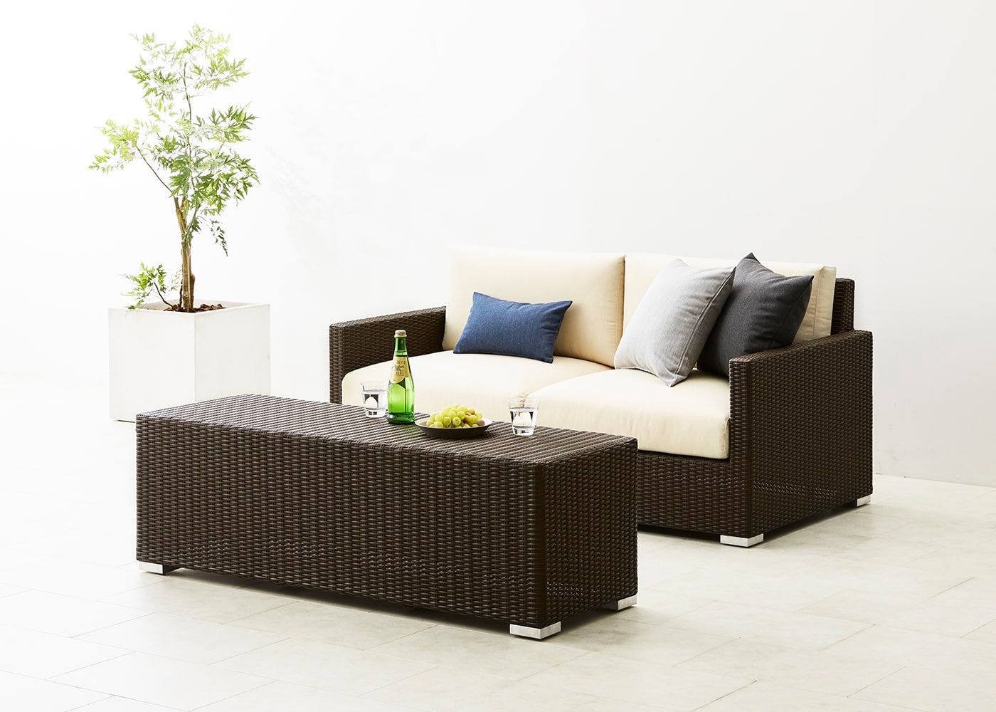 テーブル全体を直線のみで描いたモダンで洗練されたデザイン。様々なエクステリアに合わせやすいスクエアなフォルムが特長です。職人が丁寧に編み込んだ自然感のある素材を採用しました。
