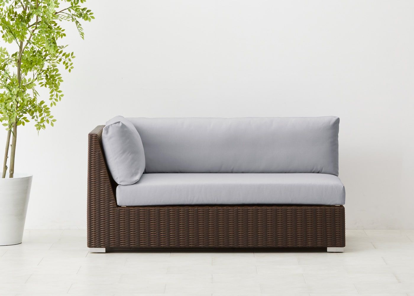 風が通り抜ける心地良いテラスやバルコニーで、お好みの組み合わせを考えてレイアウトしてみましょう。非日常的な空気感の中で極上のリラックスが得られます。(写真は2P右アーム+2P左アーム+