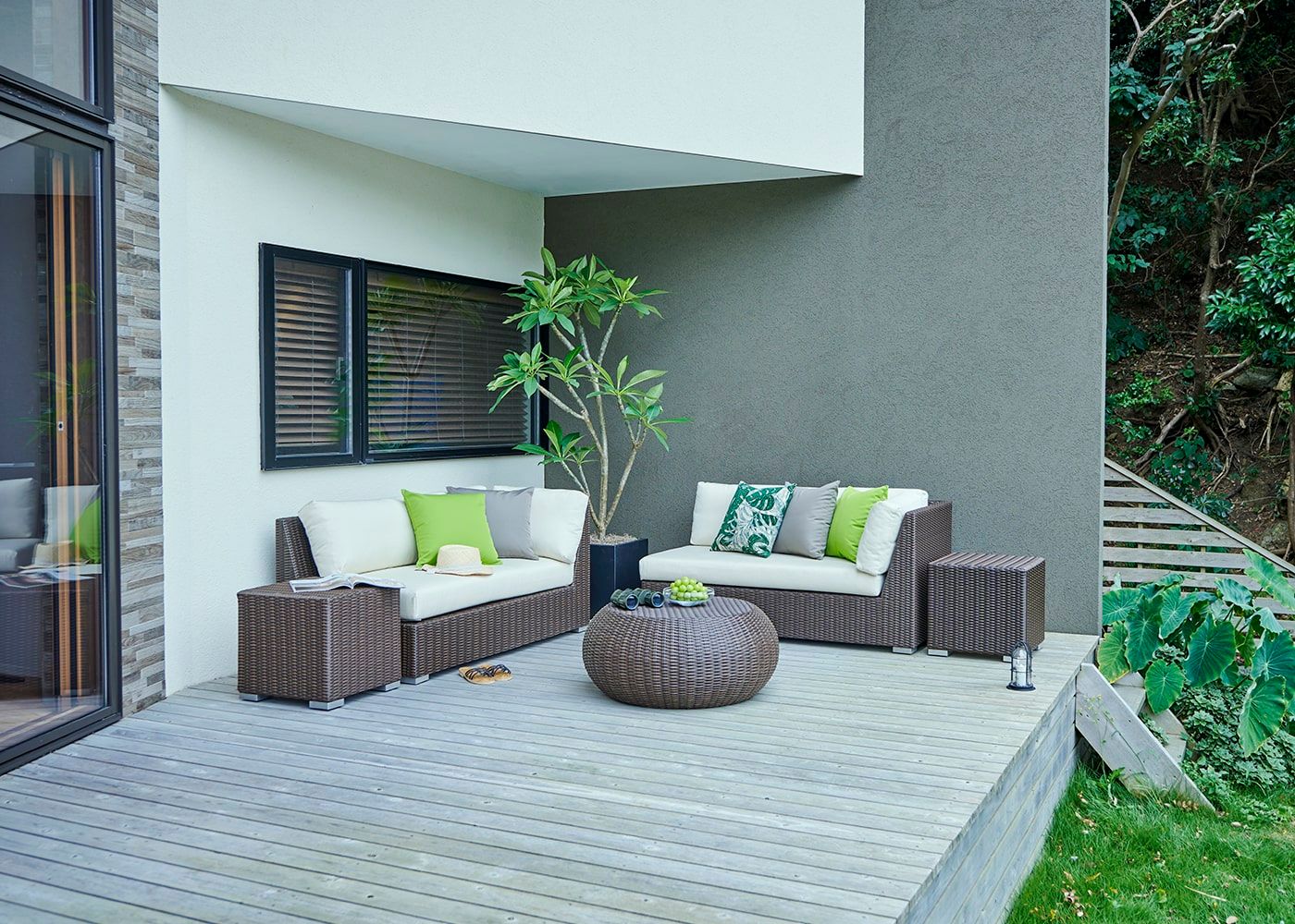 木陰や木漏れ日が広がるテラスにガーデンソファを配置すれば、ご自宅でもリゾート気分でオフの時間を満喫できます。また、