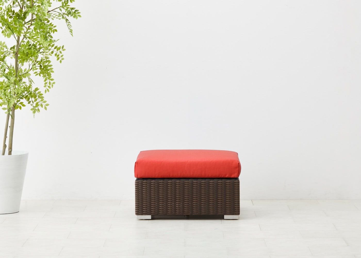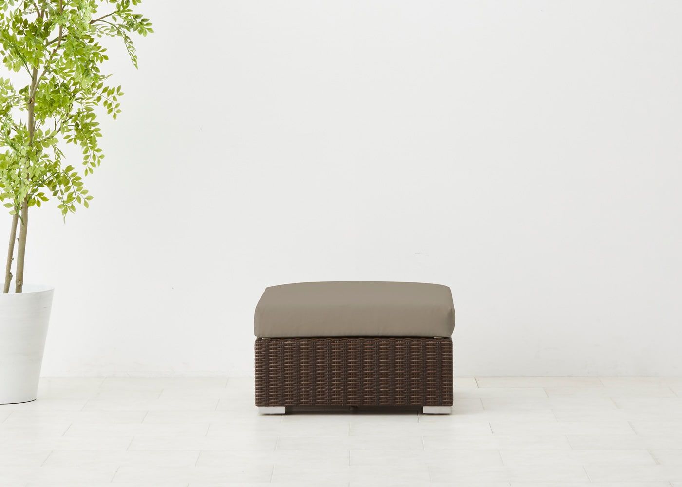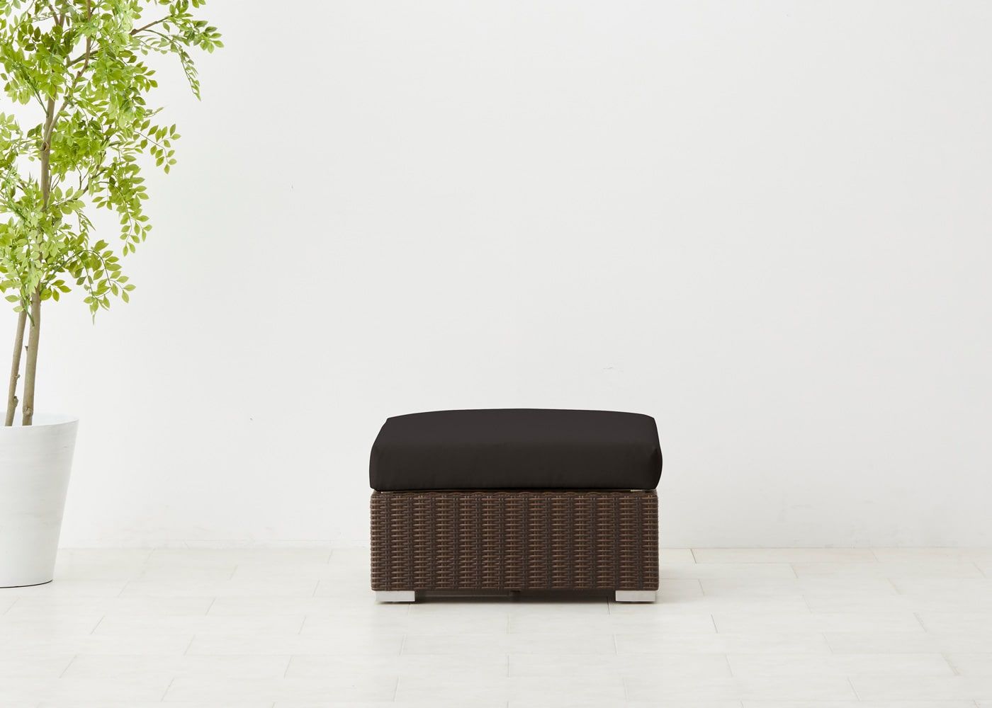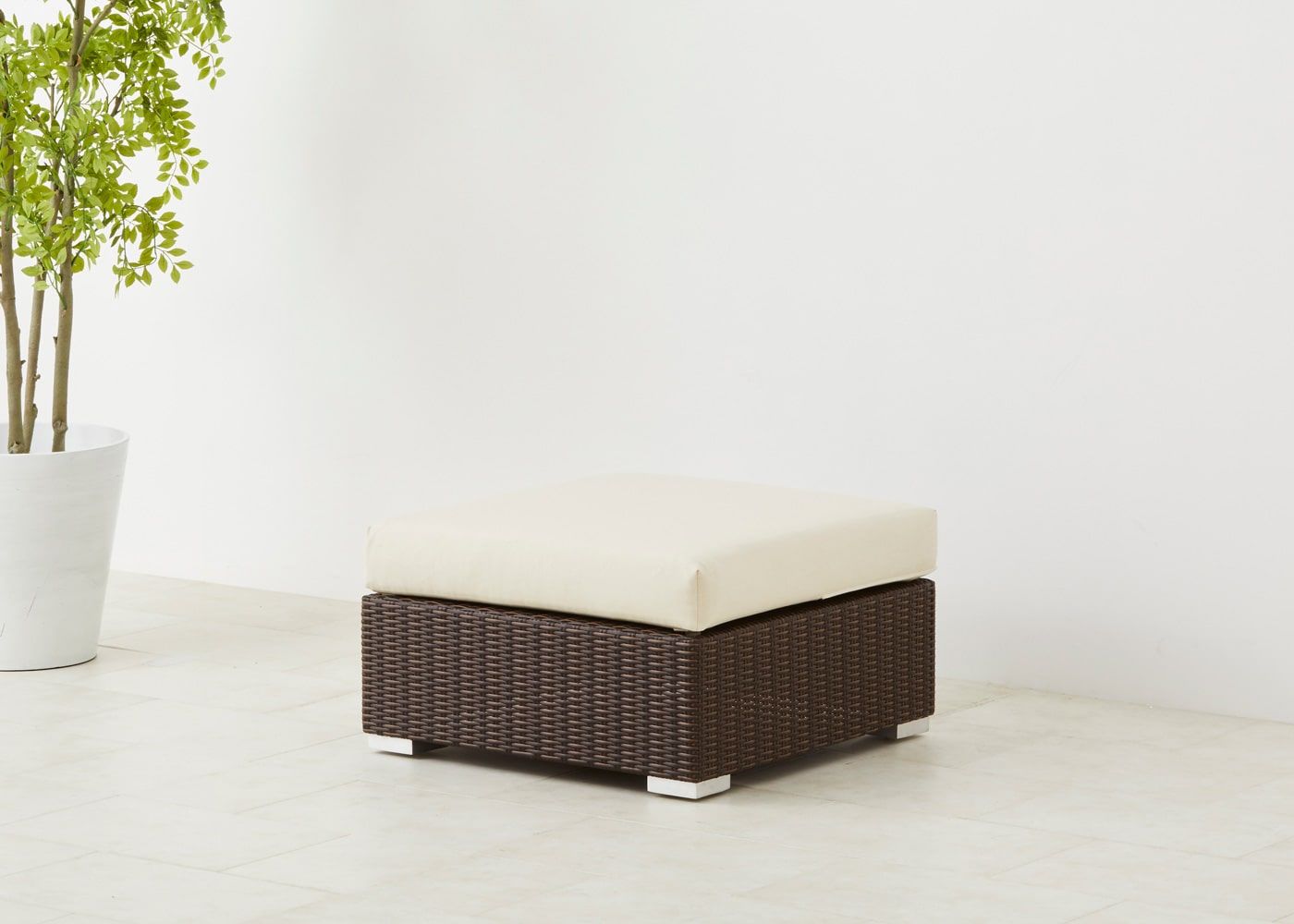 オットマン最大の魅力はソファ前に置いて、ゆったり脚を伸ばせるスペースを作れることにあります。屋外でのひと時をより充実させたい場合におすすめのアイテムです。(写真は