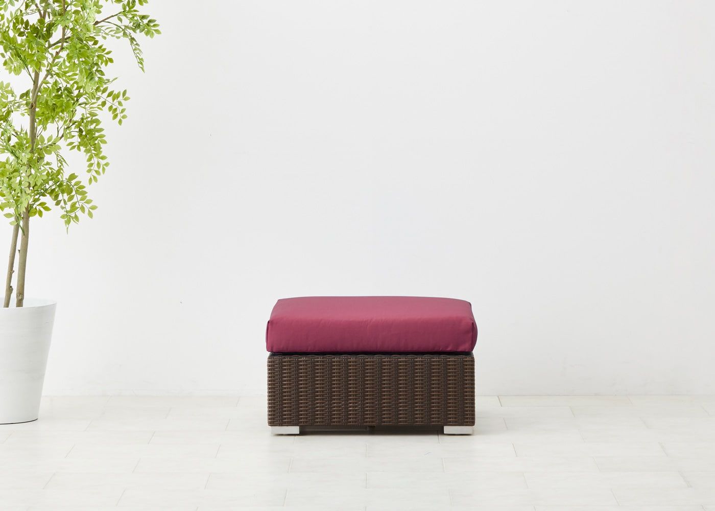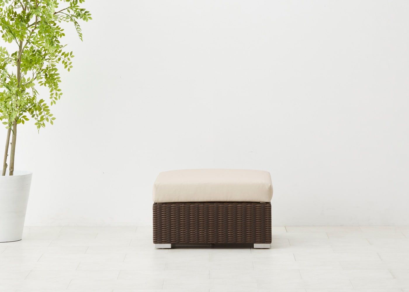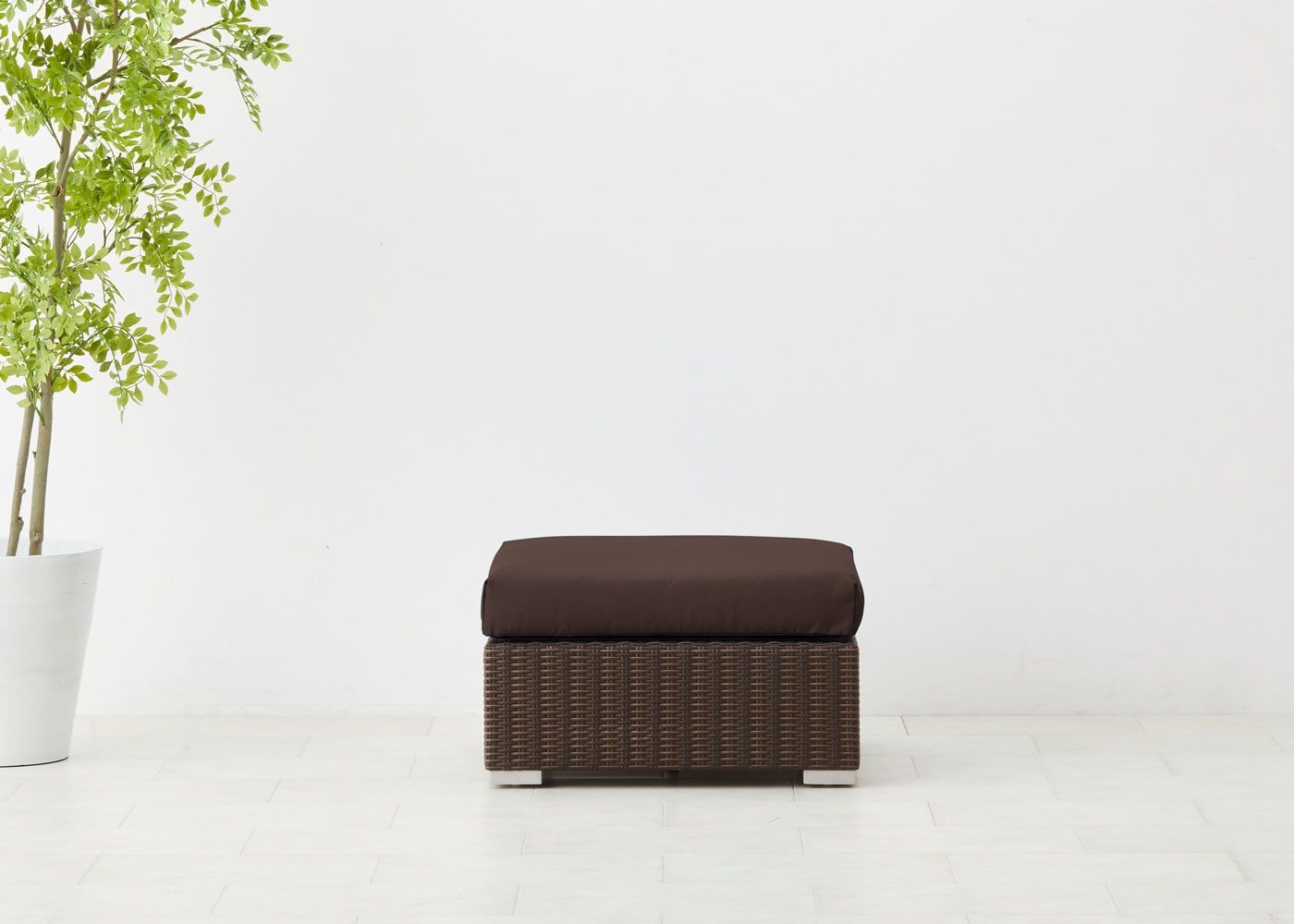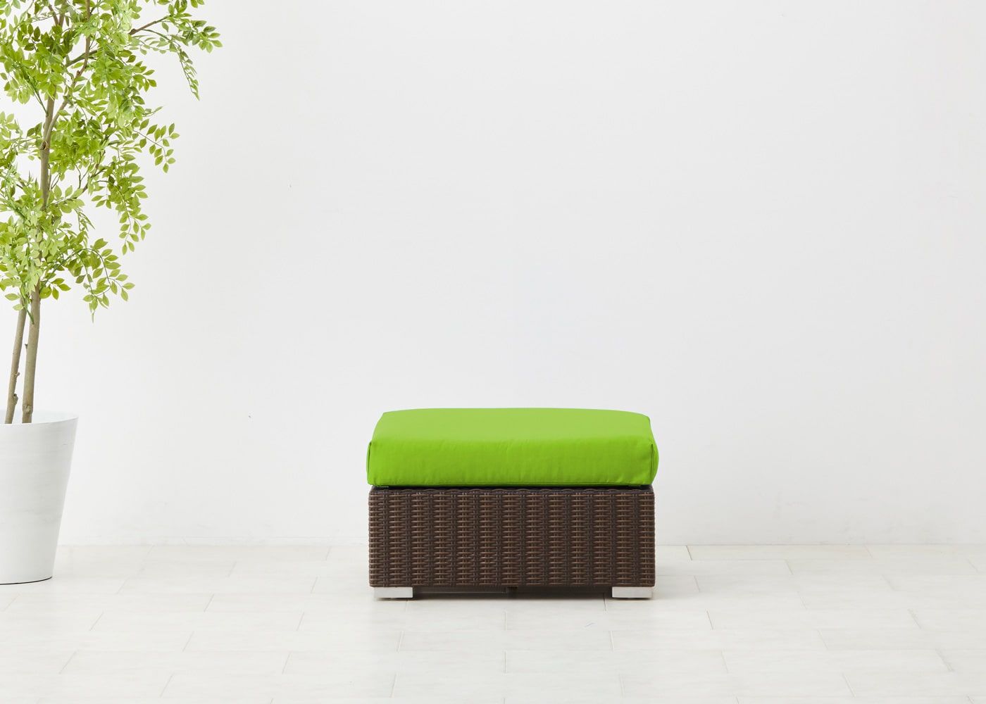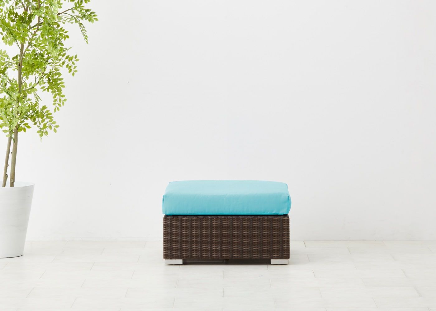 オットマン最大の魅力はソファ前に置いて、ゆったり脚を伸ばせるスペースを作れることにあります。屋外でのひと時をより充実させたい場合におすすめのアイテムです。(写真は