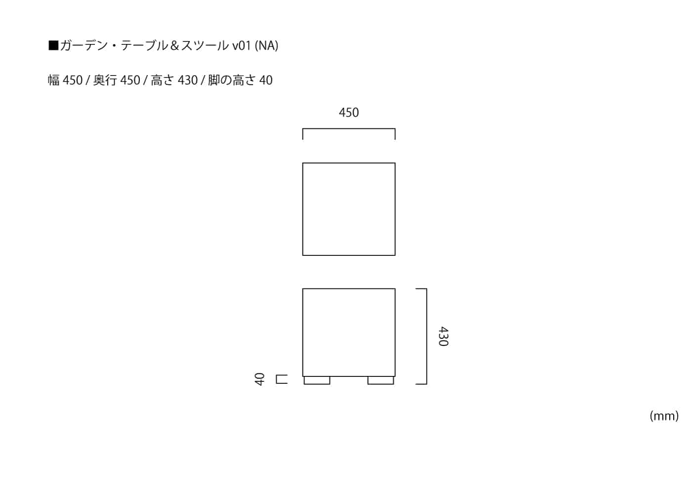 幅450 / 奥行450 / 高さ430