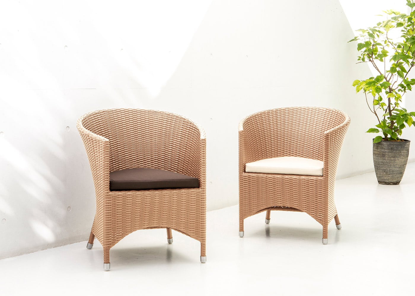貝のような美しい曲線を描き、やさしく包まれる心地よさが魅力のガーデン・ラウンジチェア。強い日差しや風雨による劣化を気にせず、屋外に一年中設置したままでご使用頂けます。