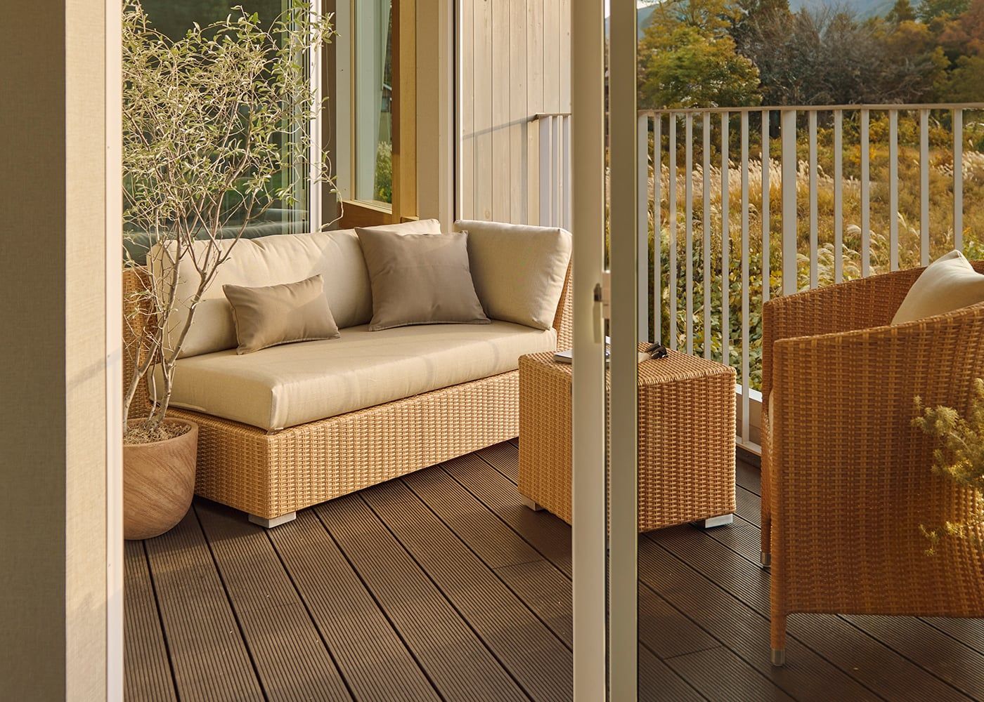 強い日差しや風雨に強い高密度ポリエチレン素材を採用。耐熱温度は-70~130℃で、リサイクル可能かつ安全性に優れています。自然な色ムラで天然素材に近い質感を実現し、変わらない風合いを保ちます。