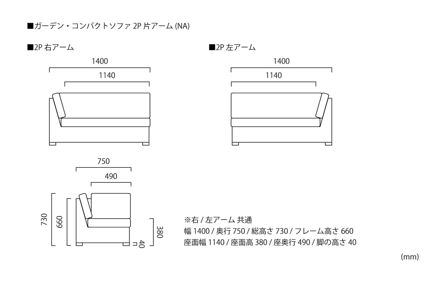 幅1400 / 奥行750 / 高さ730 / 座面高380 / 座奥行490