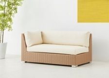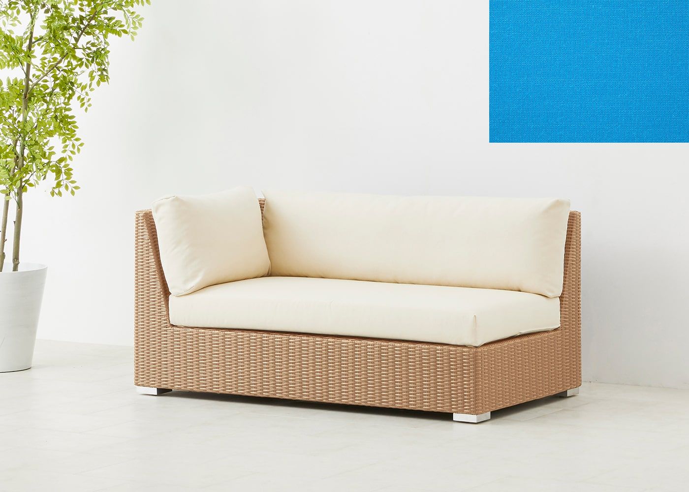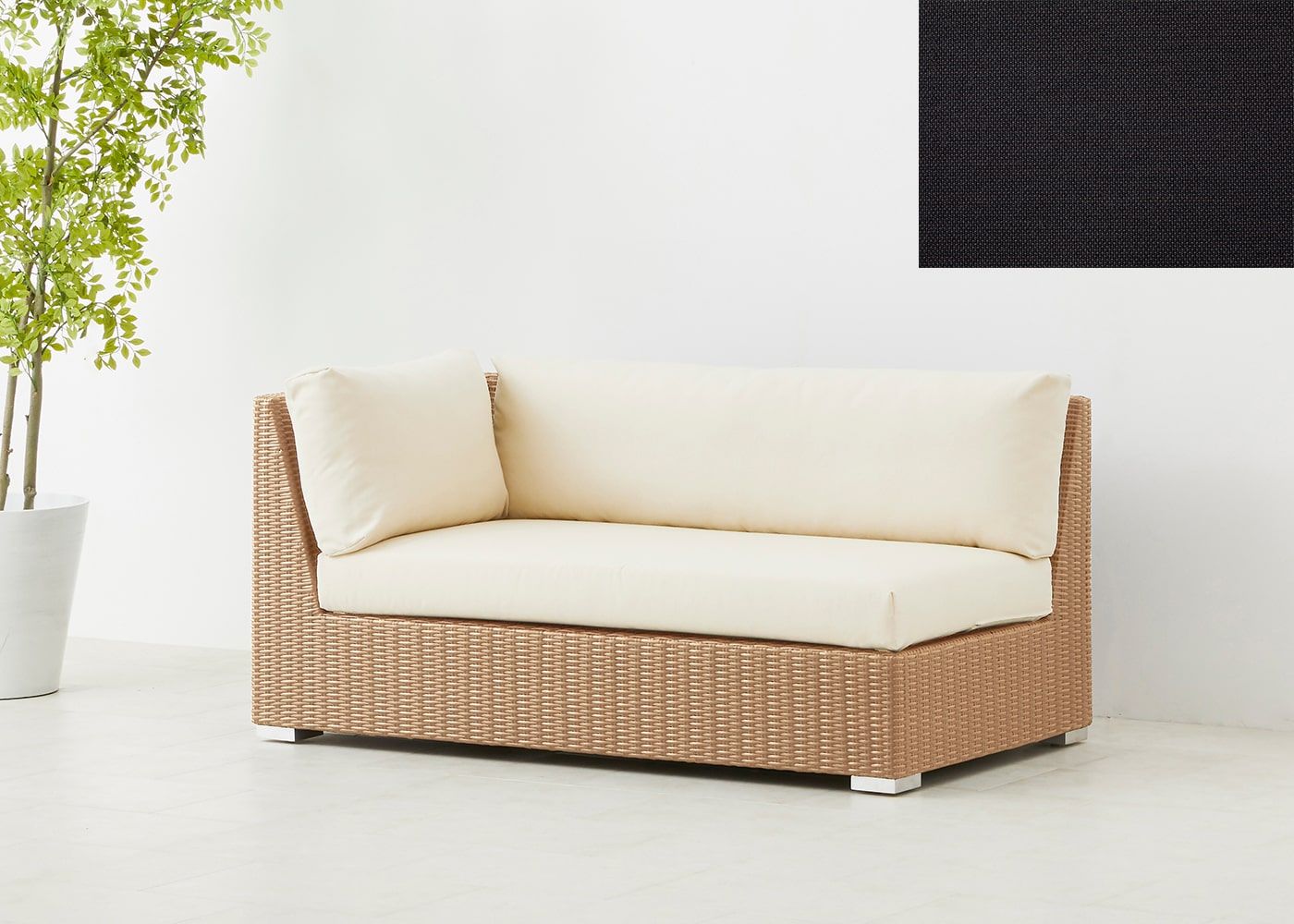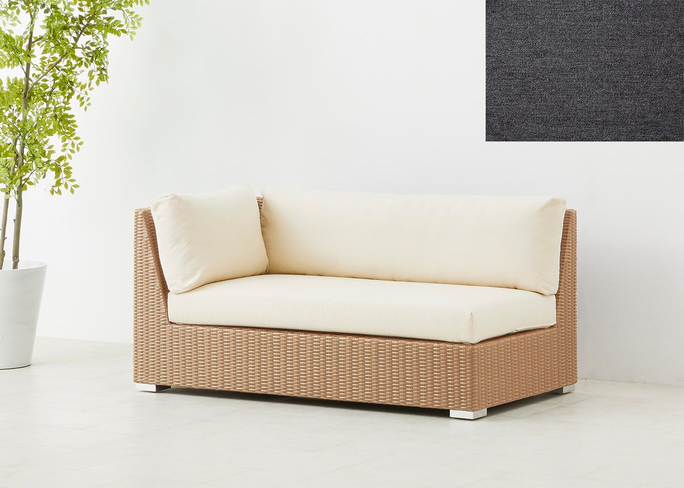 奥行きの浅いコンパクトなサイズが魅力のガーデン・コンパクトソファ 2P片アーム (NA)。日差しや風雨による劣化を気にせず、一年中屋外に置いておける高品質の屋外用家具です。(写真は2P左アーム+
