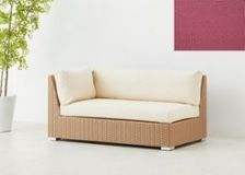 アクリルを原料から染める特殊製法で色褪せにくく、防カビ・防腐・防汚・撥水加工を施したイタリア製ファブリック。屋外でも使用可能で、手洗いでき、コットンのような肌触りを持つ高機能素材です。