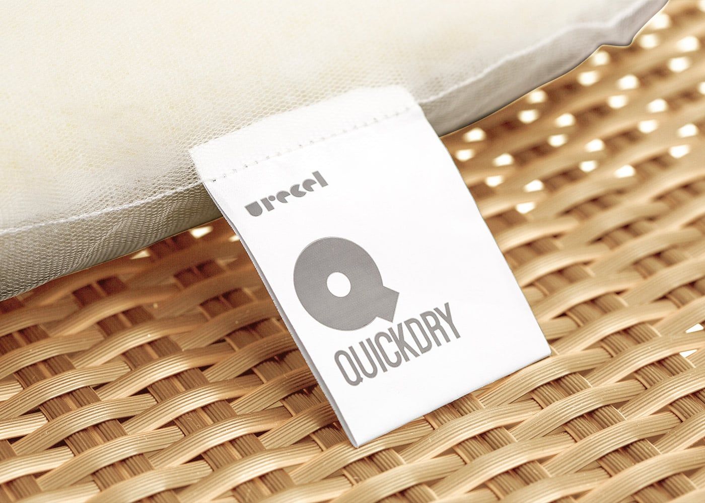 このタグは、屋外用に開発された特殊ウレタン「クイック・ドライ・フォーム」を採用したクッション素材だけに取り付けられています。