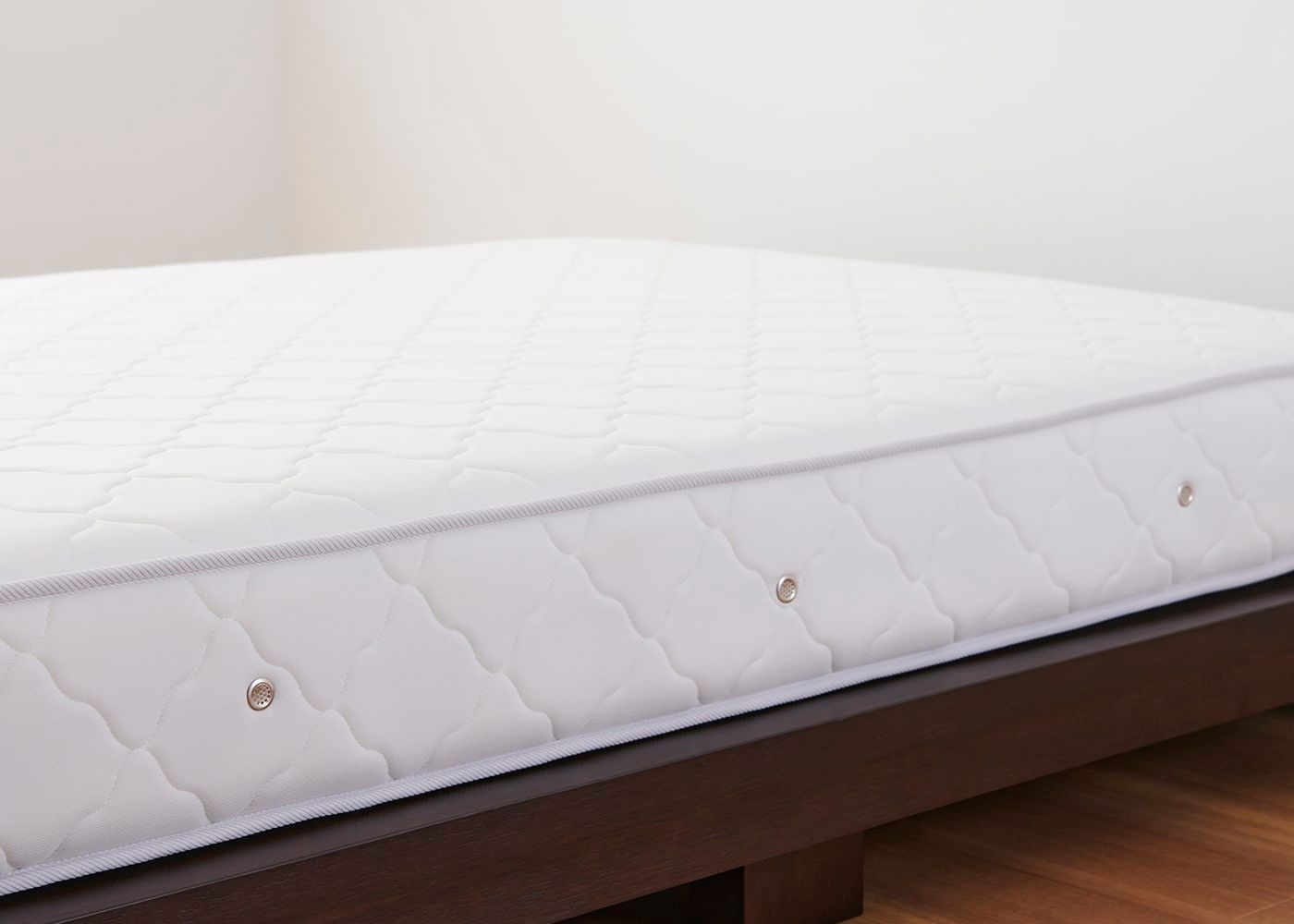 長く使えるマットレスの条件として、表面の詰め物の適度な厚みが挙げられます。ほどよい感触の詰め物が硬すぎず柔らかすぎない寝心地を実現し、また後日に寝心地を調整したい場合にもマットレストッパーなどを使いやすい構造と言えるでしょう。