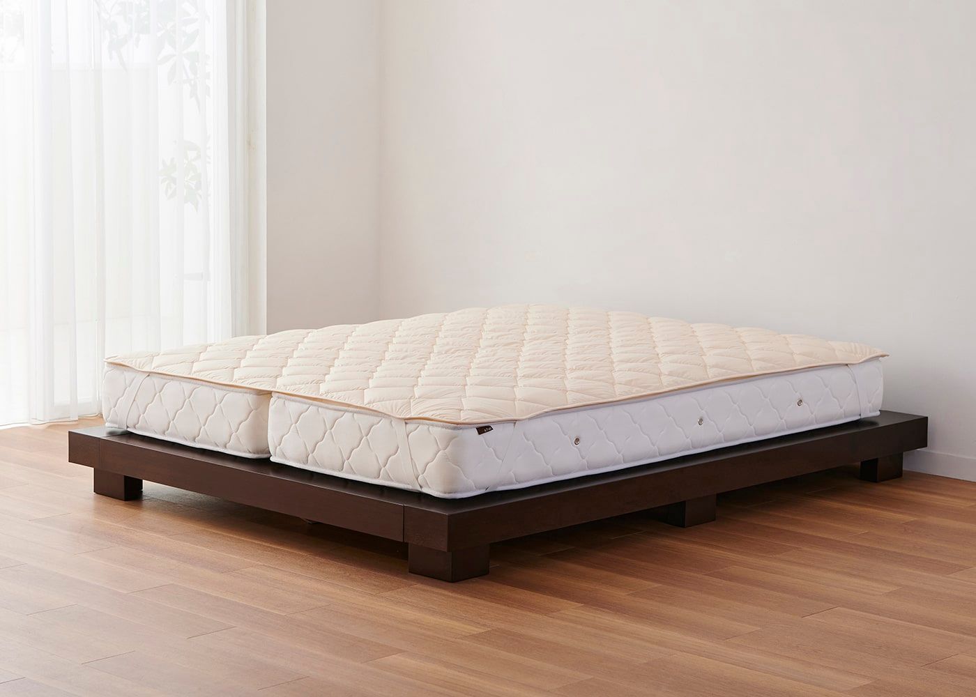 ハーフマットレス特有のマットレスとマットレスの間にできる隙間を気にされる場合は、ベッドパッドを使用すれば気にすることなくご利用可能です。(※写真はクイーン ハーフ×2に