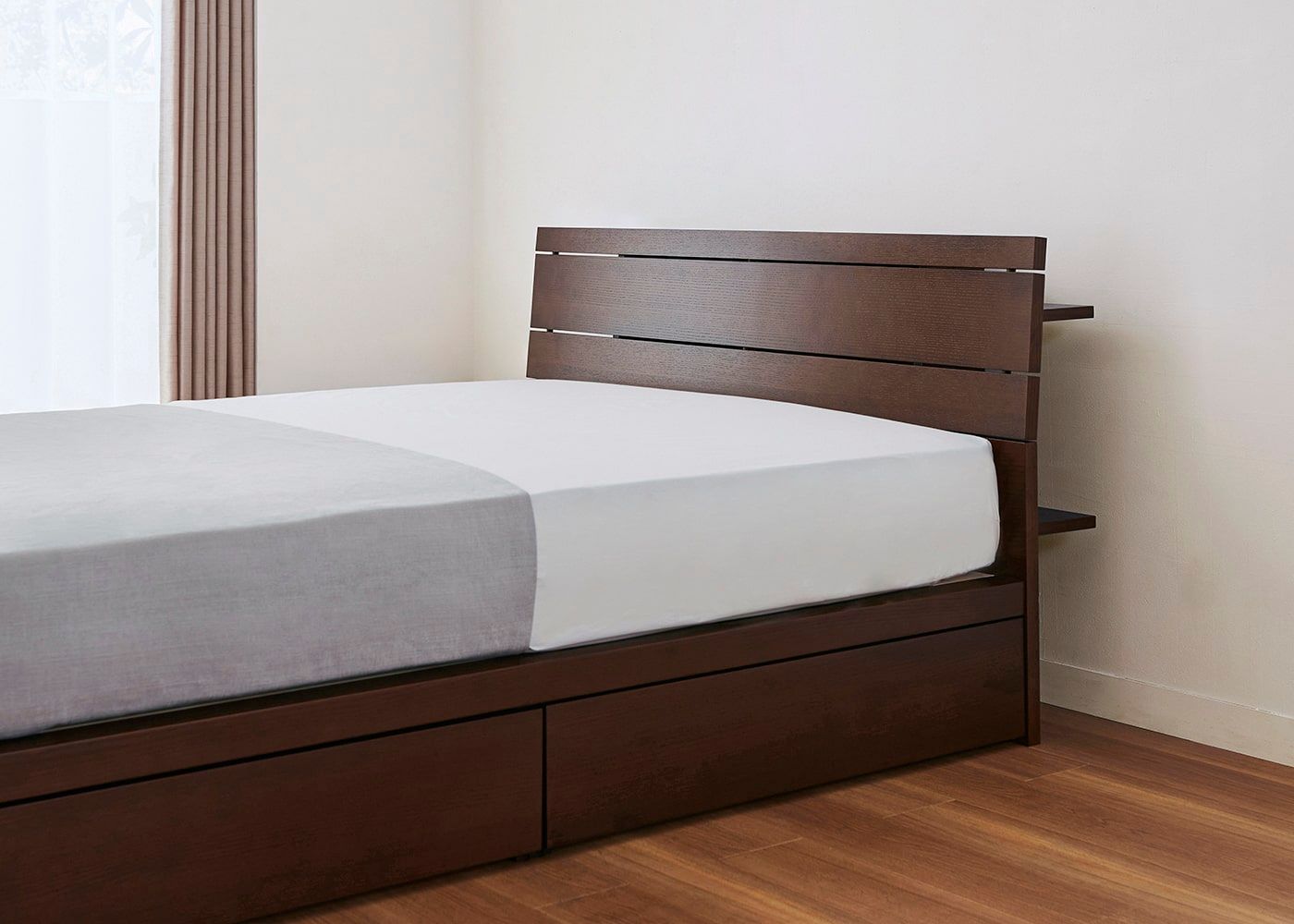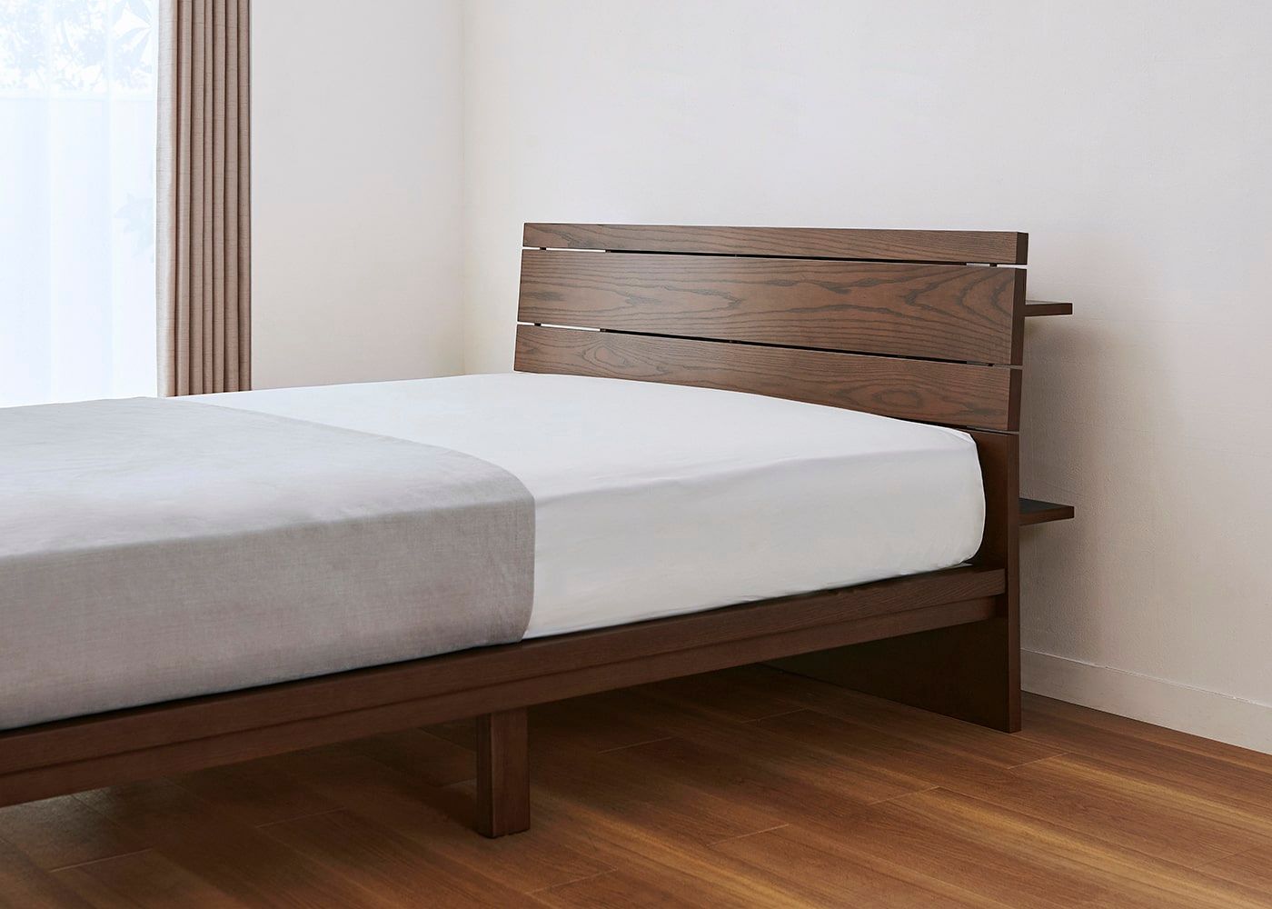 ムク・ベッドにダブル(ハード)を置いたイメージ。(マットレス上面高さ=480mm)
