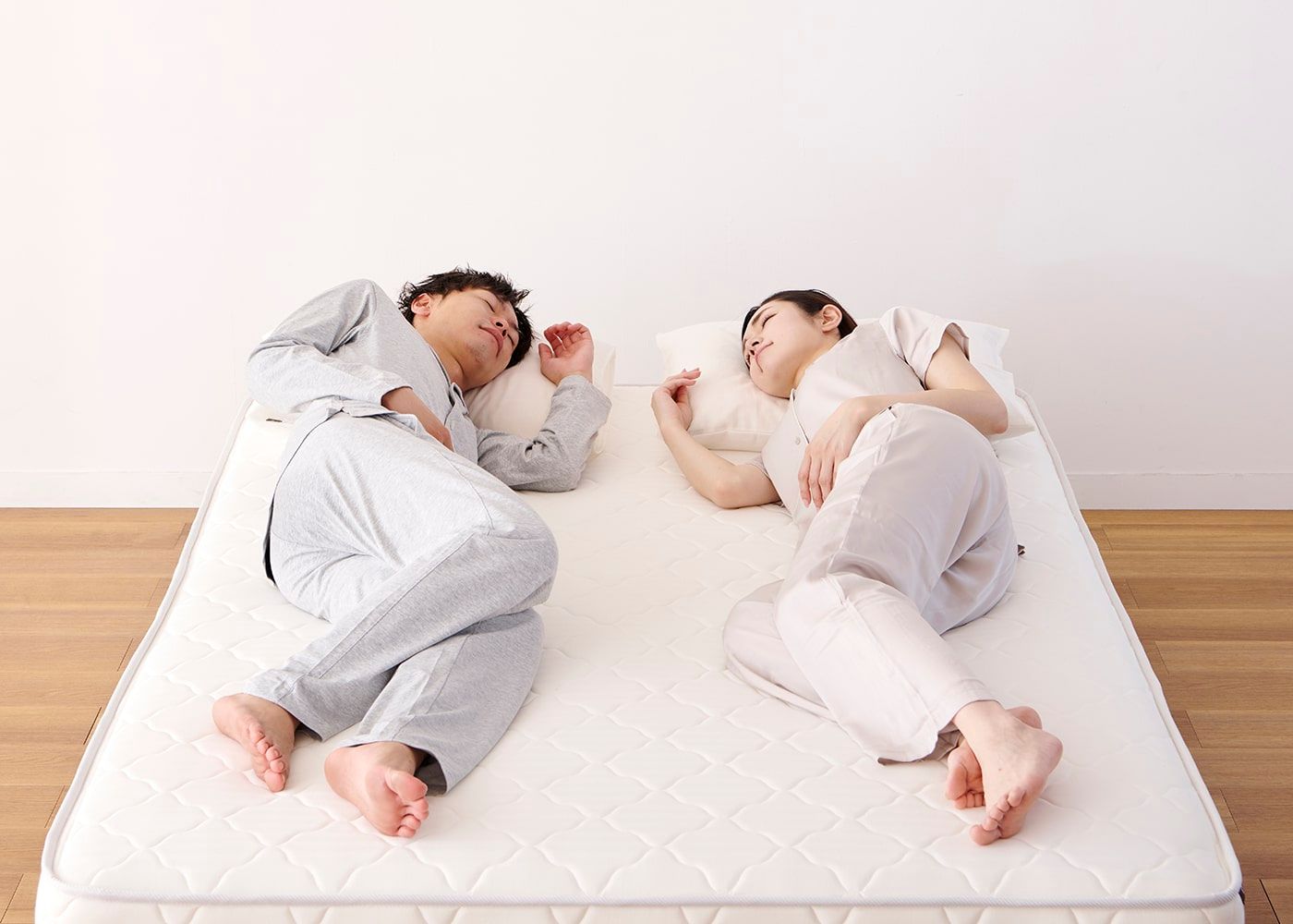 「理想的な寝姿勢」を保つためには、体重に合わせた最適なマットレスの硬さを選ぶことが重要です。ノーマル、ハードタイプの2種類からお選び下さい。※写真のマットレスはハード(ダブル)