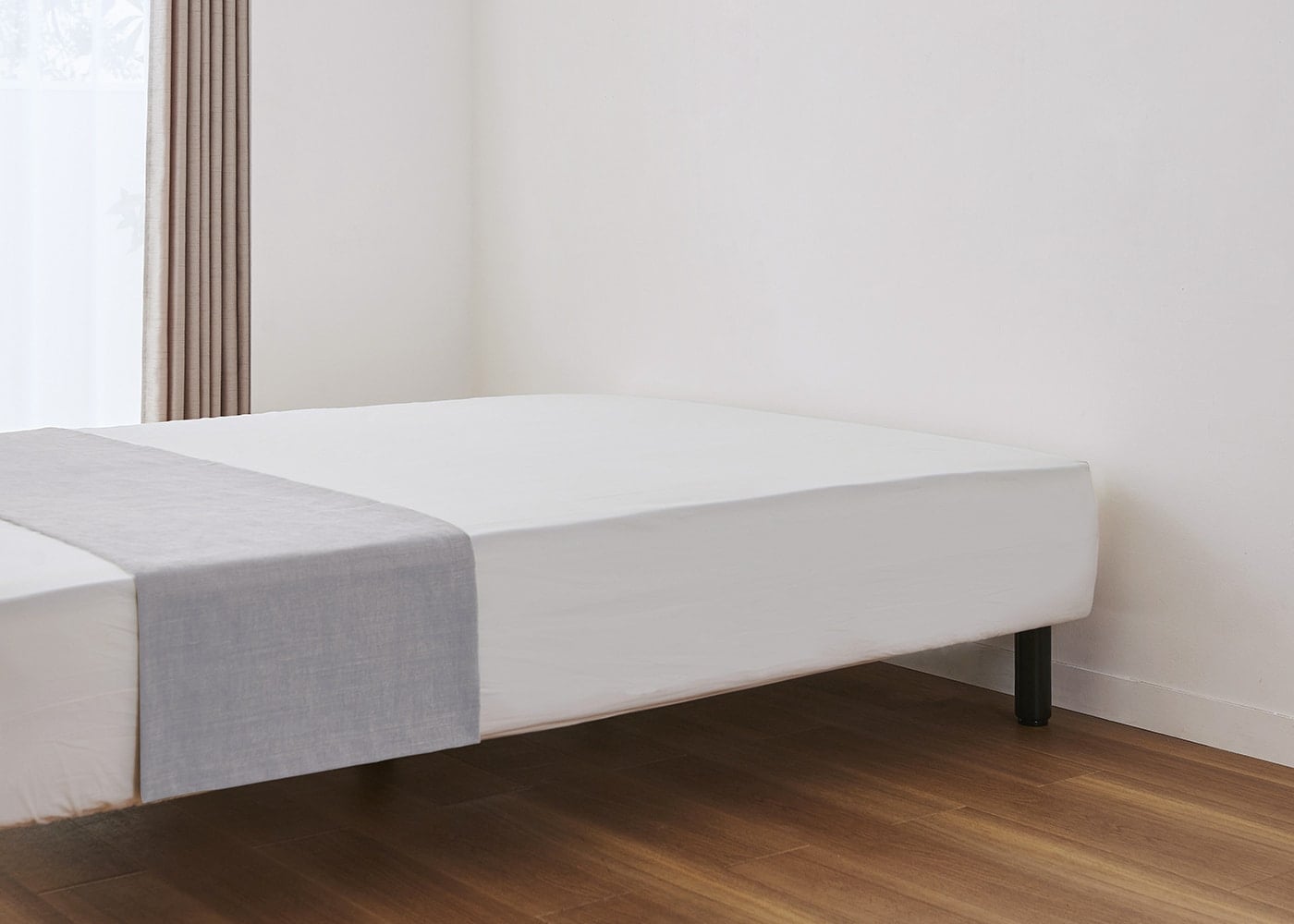 限られた空間をより広く見せてくれる、脚が7cm低いタイプもご用意しています。(写真はダブルサイズ、脚高さ120mm