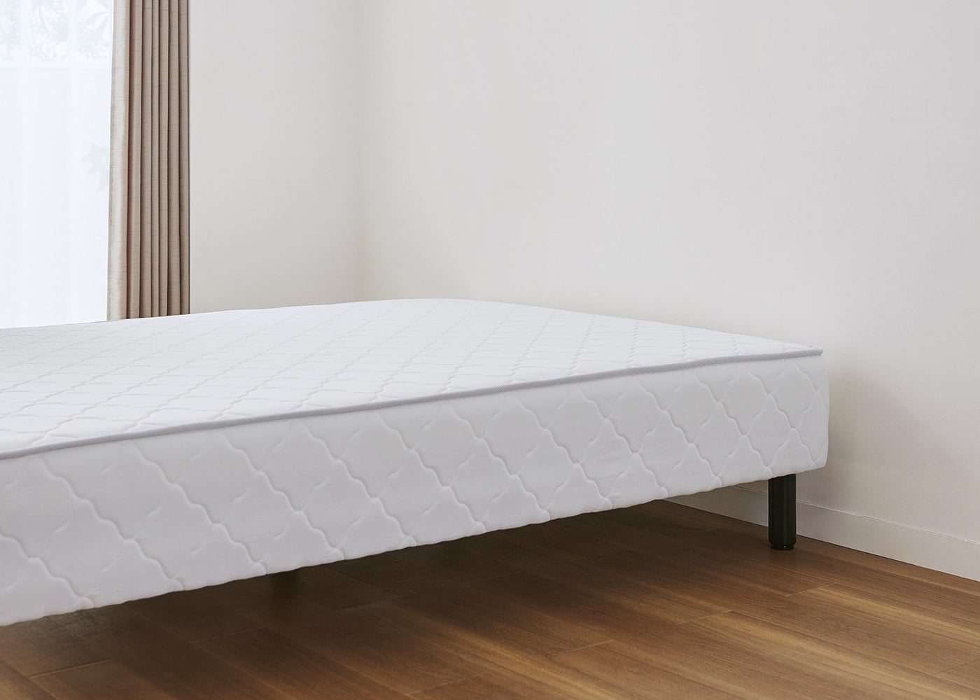 一人暮らしのワンルームやコンパクトな寝室に配置しやすい、シンプルな脚付きマットレス。コイルを肩や腰の負担を軽減する5つのゾーン分けをした、ナチュラル色の脚付きマットレスとなります。