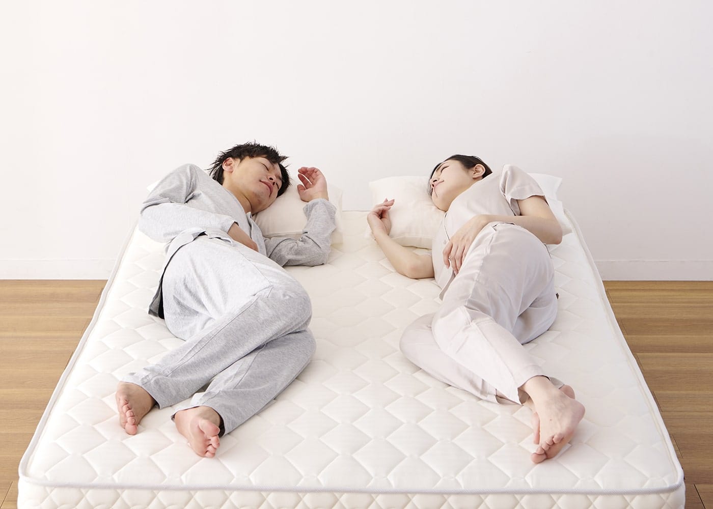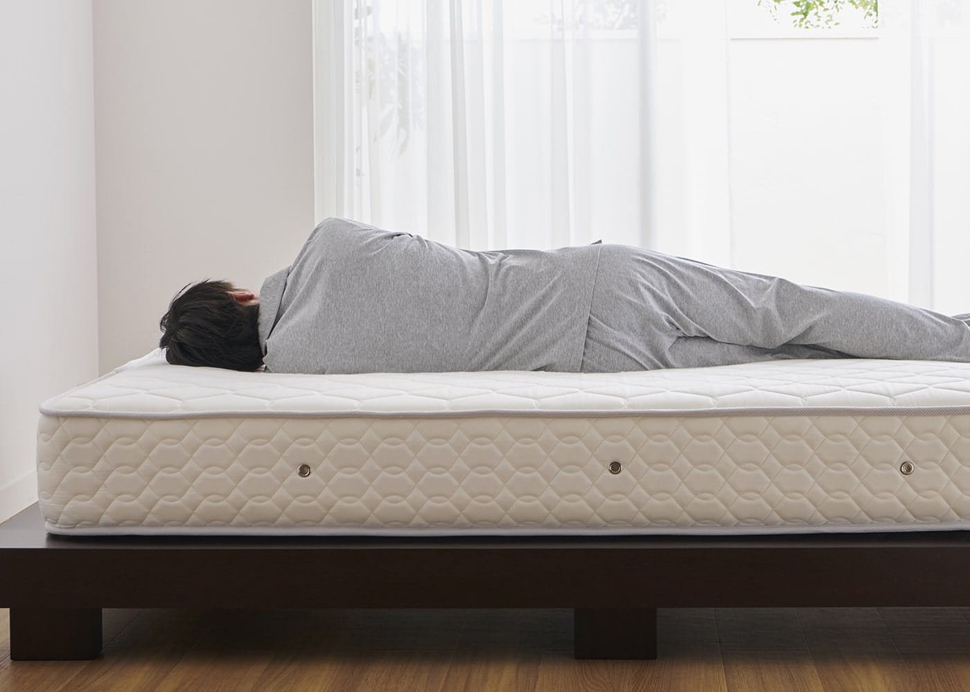 「理想的な寝姿勢」を保つためには、体重に合わせた最適なマットレスの硬さを選ぶことが重要です。ノーマル、ハードタイプの2種類からお選び下さい。※写真のマットレスはハード(ダブル)