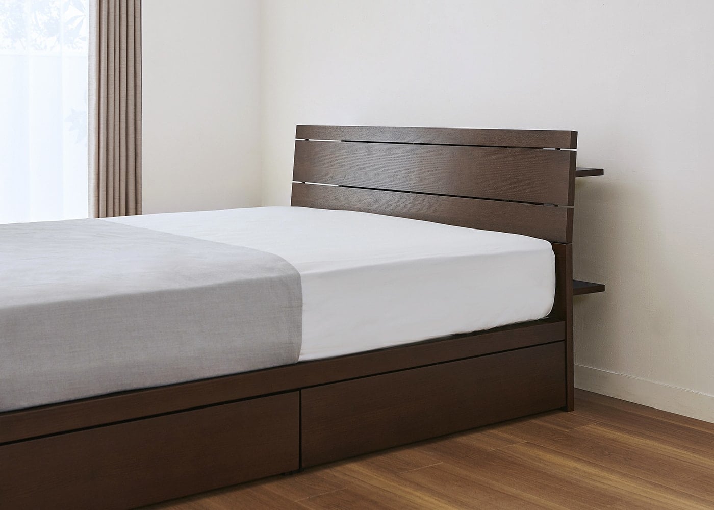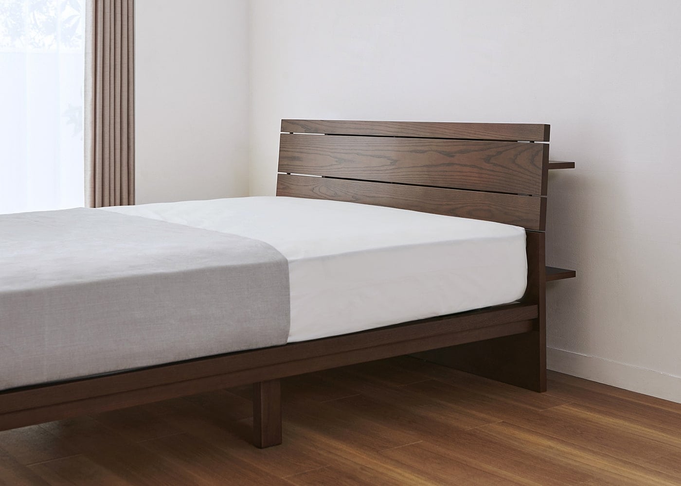 ムク・ベッドにダブル(ハード)を置いたイメージ。(マットレス上面高さ=505mm)