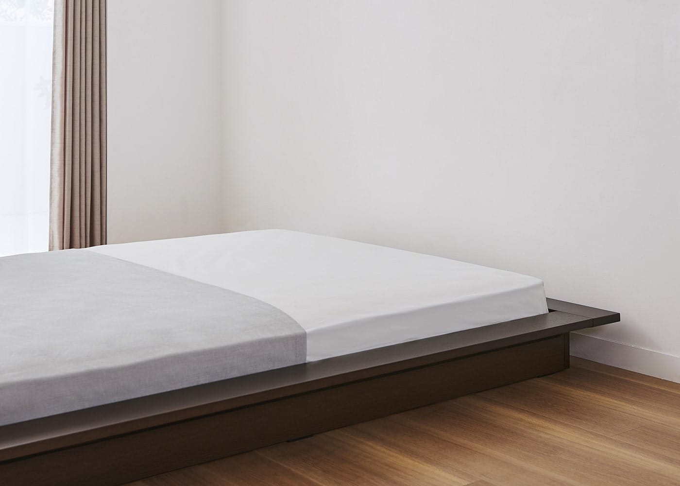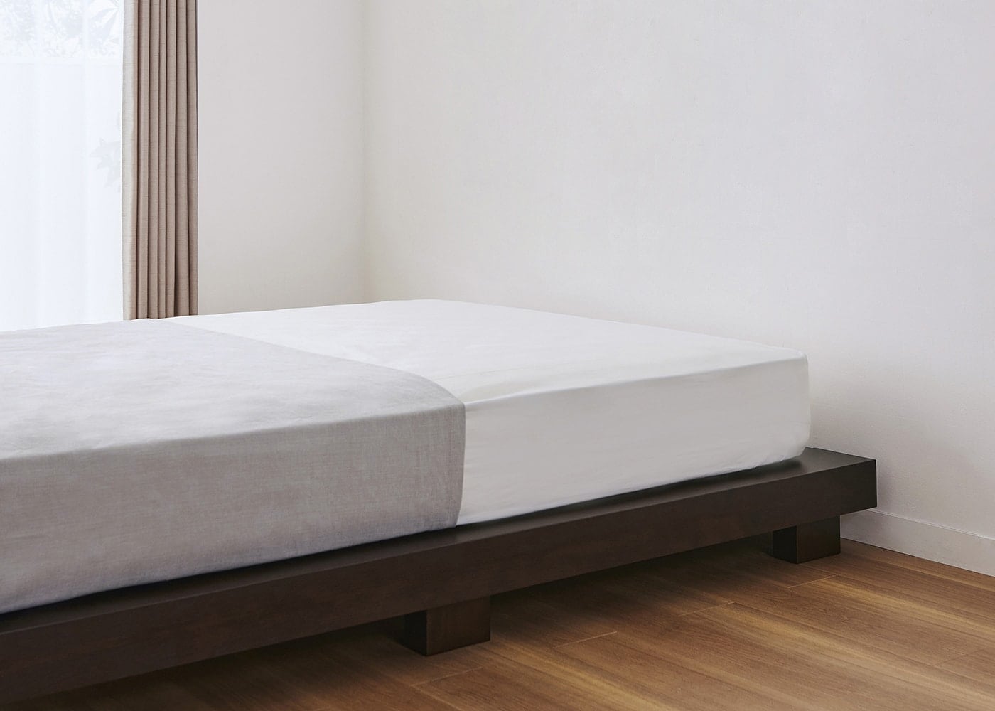 ここからはa.flatのベッドフレームに、高密度プレミアム・ポケットコイル・マットレスを配置した際の高さイメージをご紹介。(写真は、