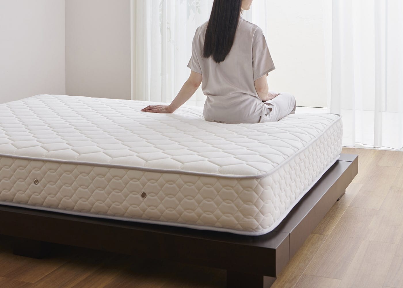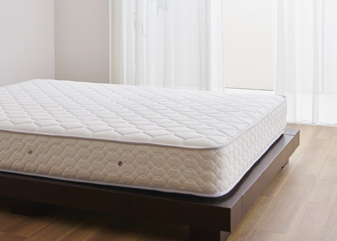 長く使えるマットレスの条件として、表面の詰め物の適度な厚みが挙げられます。ほどよい感触の詰め物が硬すぎず柔らかすぎない寝心地を実現し、また後日に寝心地を調整したい場合にもマットレストッパーなどを使いやすい構造と言えるでしょう。