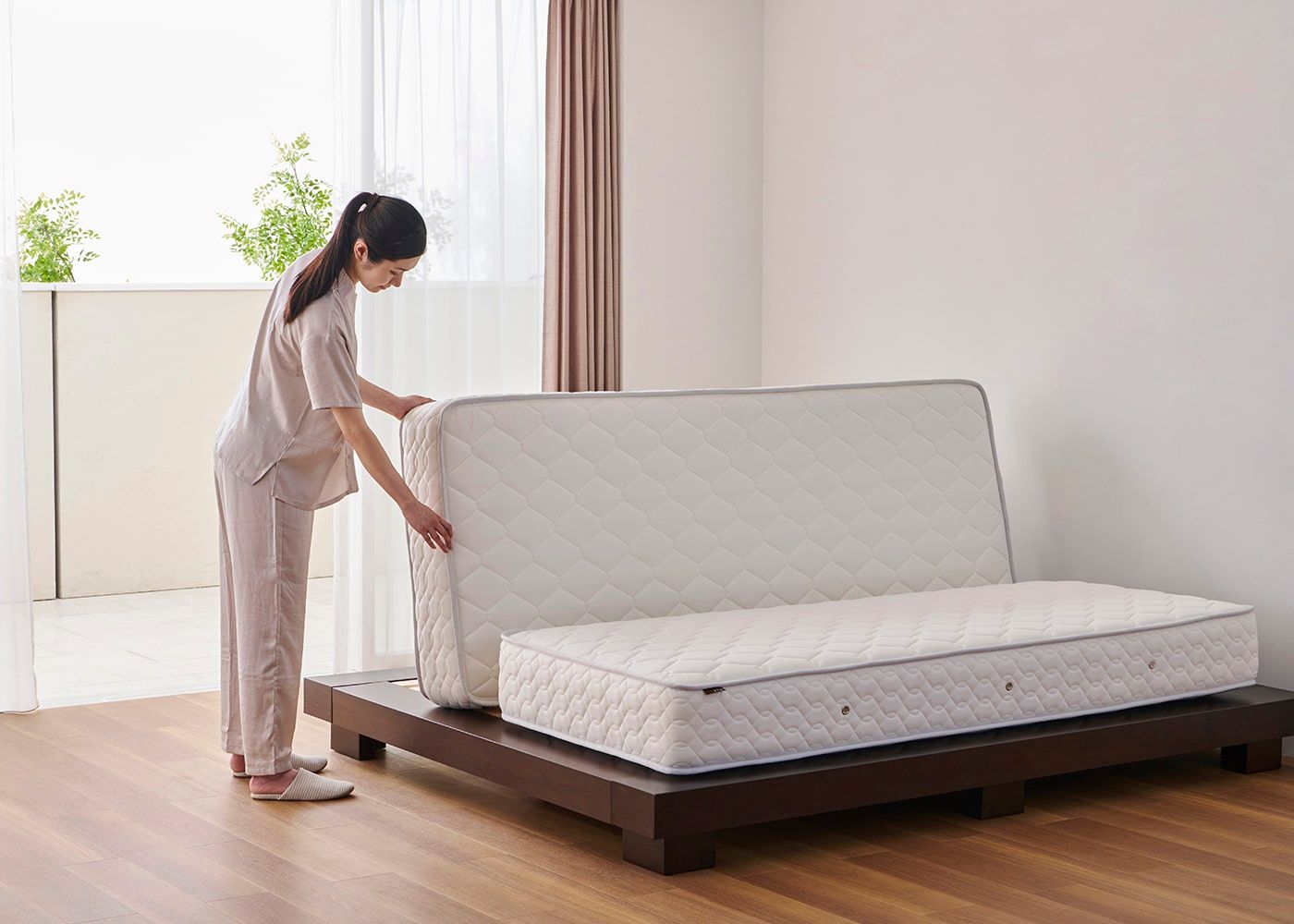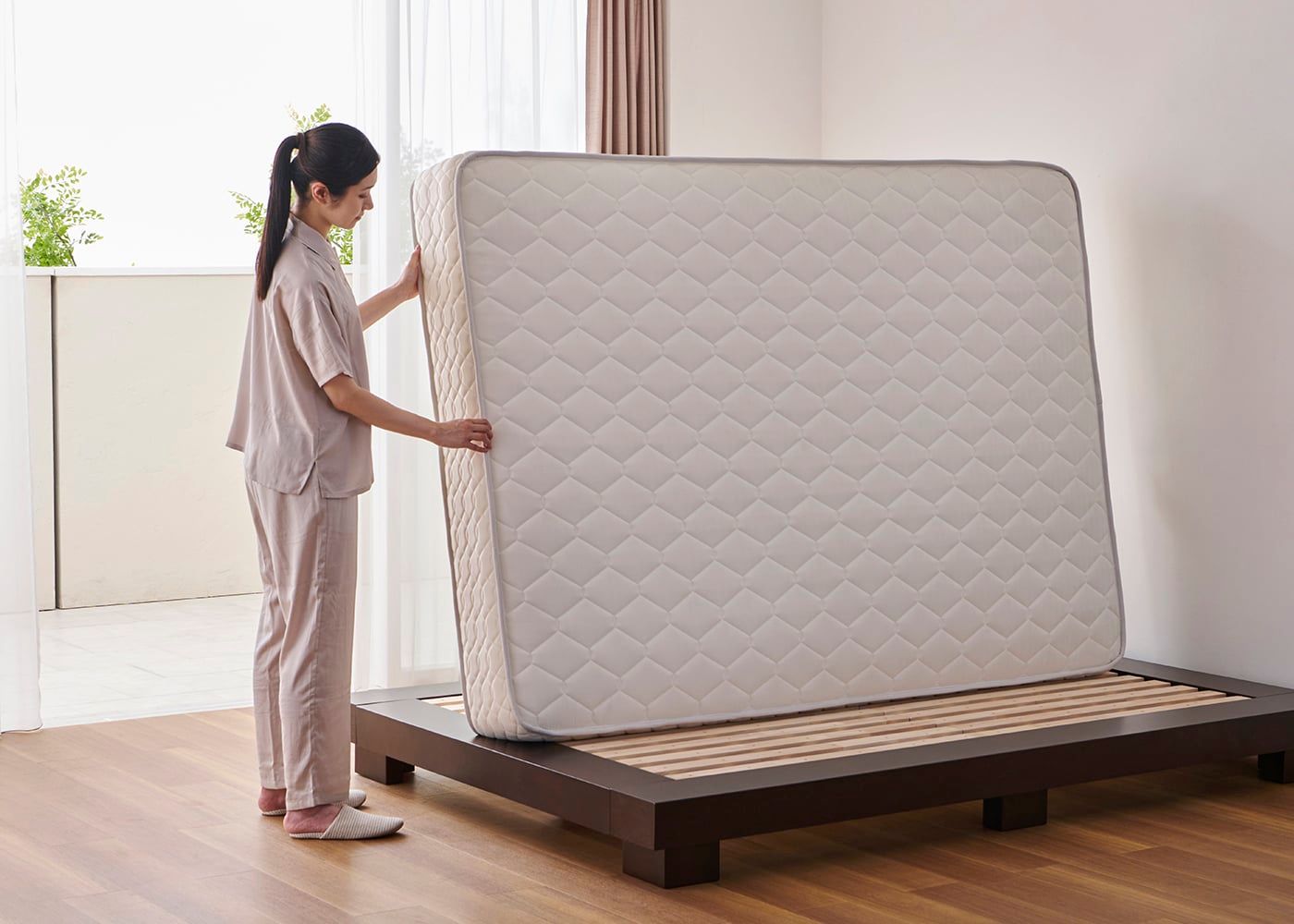 ハーフタイプのマットレスは分割されていることによって、女性の方でも動かしやすいメリットも有ります。表裏や上下の位置を変えたい時、シーツ交換などの際にも便利です。