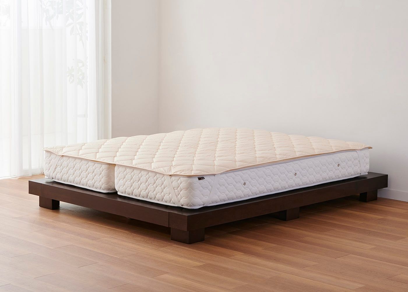 ハーフマットレス特有のマットレスとマットレスの間にできる隙間を気にされる場合は、ベッドパッドを使用すれば気にすることなくご利用可能です。(※写真はクイーン ハーフ×2に