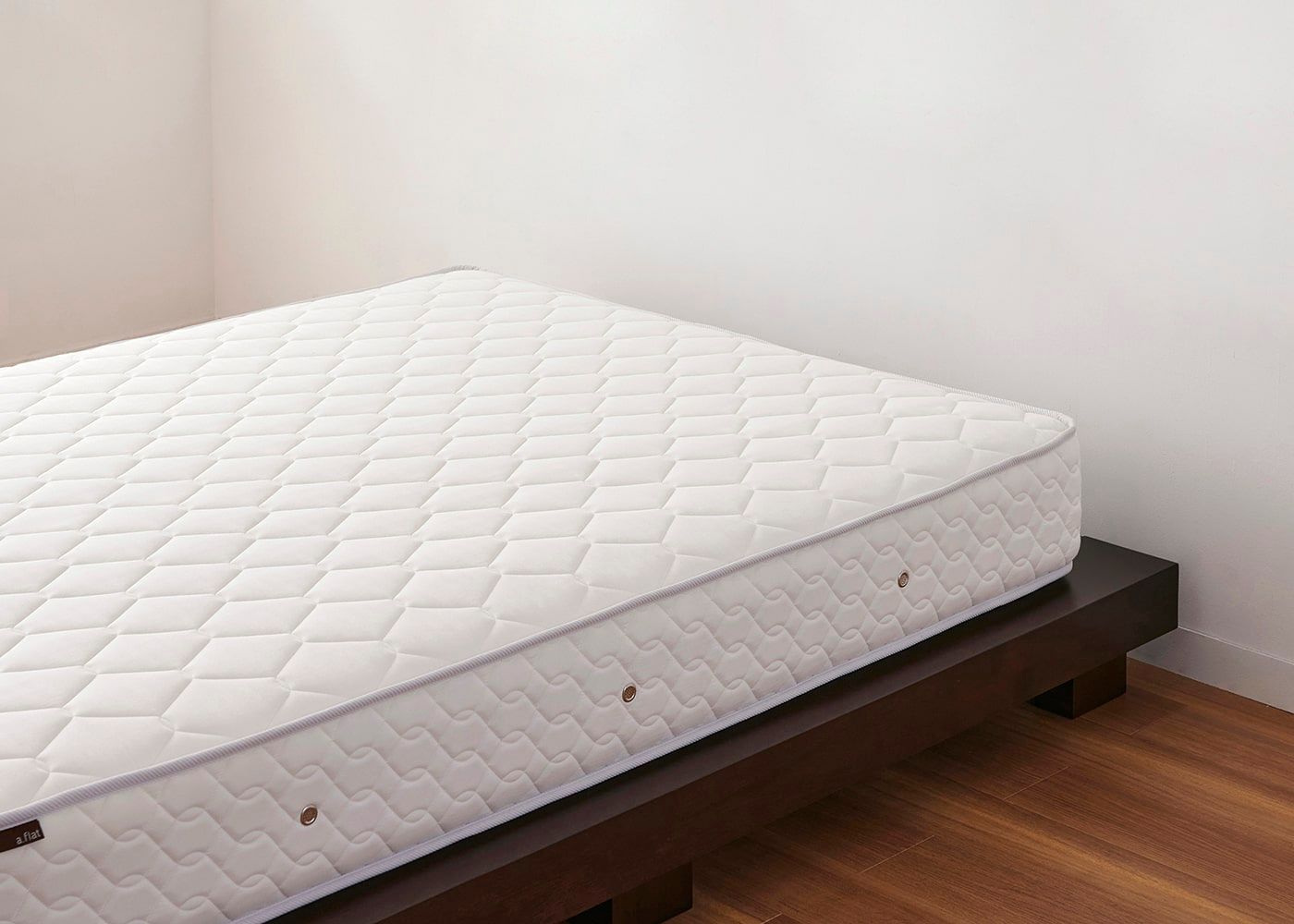 a.flatのマットレスは国内にある製品安全協会認定、「SGマーク取得工場」にて生産しています。日本人の身体と気候に合った高性能オリジナルマットレスを、徹底した品質管理のもとに開発しました。(写真はダブルサイズ)