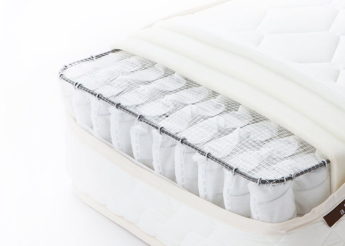 プレミアム・ポケットコイル・マットレスは、コイルスプリング1つ1つが「点」となって別々に沈み込むため「体圧分散性」に優れています。より快適な眠りを実現してくれるマットレスです。(写真はダブルサイズ)