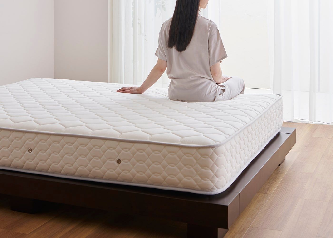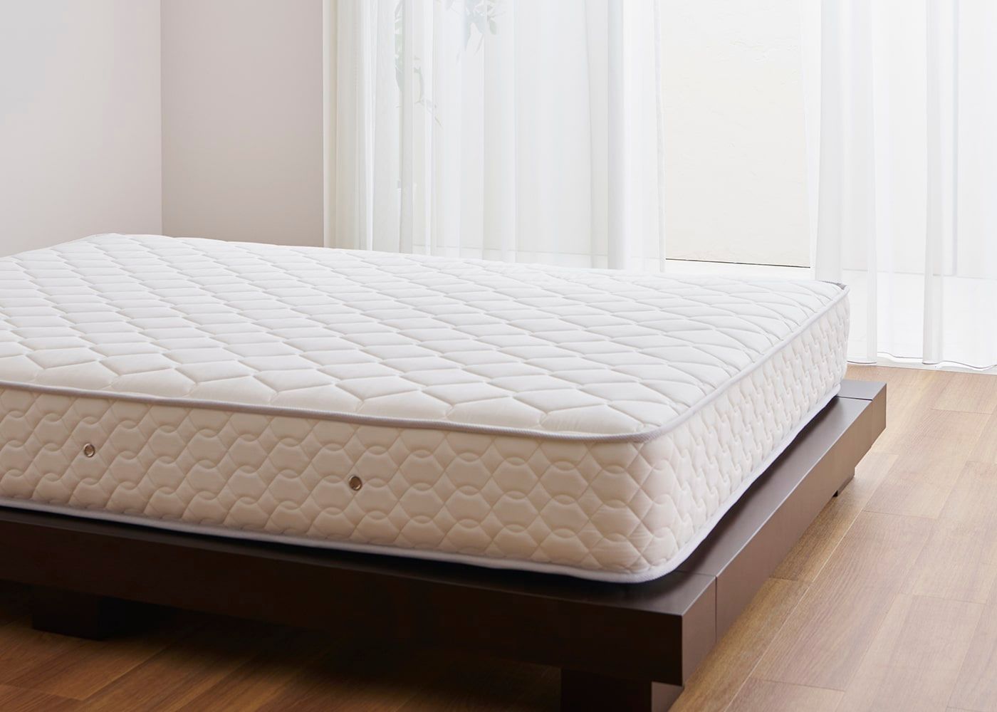 長く使えるマットレスの条件として、表面の詰め物の適度な厚みが挙げられます。ほどよい感触の詰め物が硬すぎず柔らかすぎない寝心地を実現し、また後日に寝心地を調整したい場合にもマットレストッパーなどを使いやすい構造と言えるでしょう。