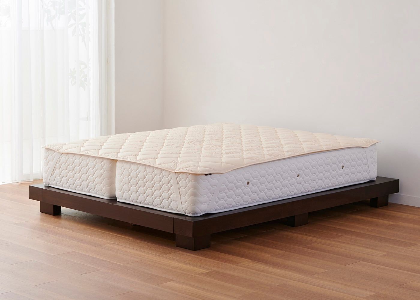 ハーフマットレス特有のマットレスとマットレスの間にできる隙間を気にされる場合は、ベッドパッドを使用すれば気にすることなくご利用可能です。(※写真はクイーン ハーフ×2に