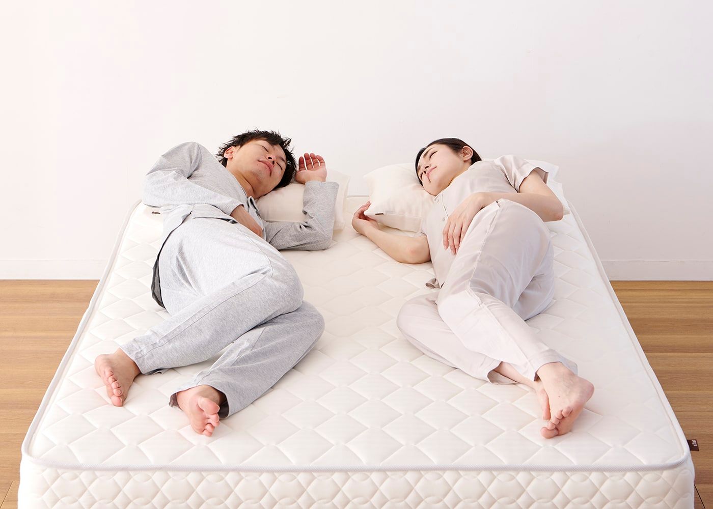 「理想的な寝姿勢」を保つためには、体重に合わせた最適なマットレスの硬さを選ぶことが重要です。ノーマル、ハードタイプの2種類からお選び下さい。※写真のマットレスはハード(ダブル)