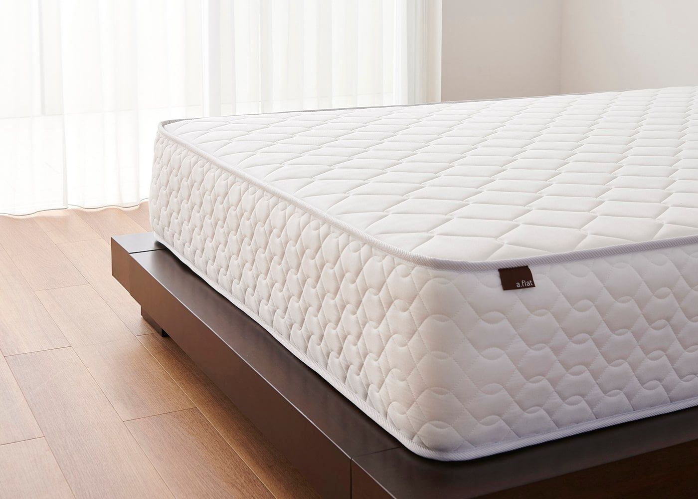 a.flatのマットレスは国内にある製品安全協会認定、SGマーク取得工場にて生産しています。日本人の身体と気候に合った高性能オリジナルマットレスを、徹底した品質管理のもとに開発しました。(写真はダブルサイズ)