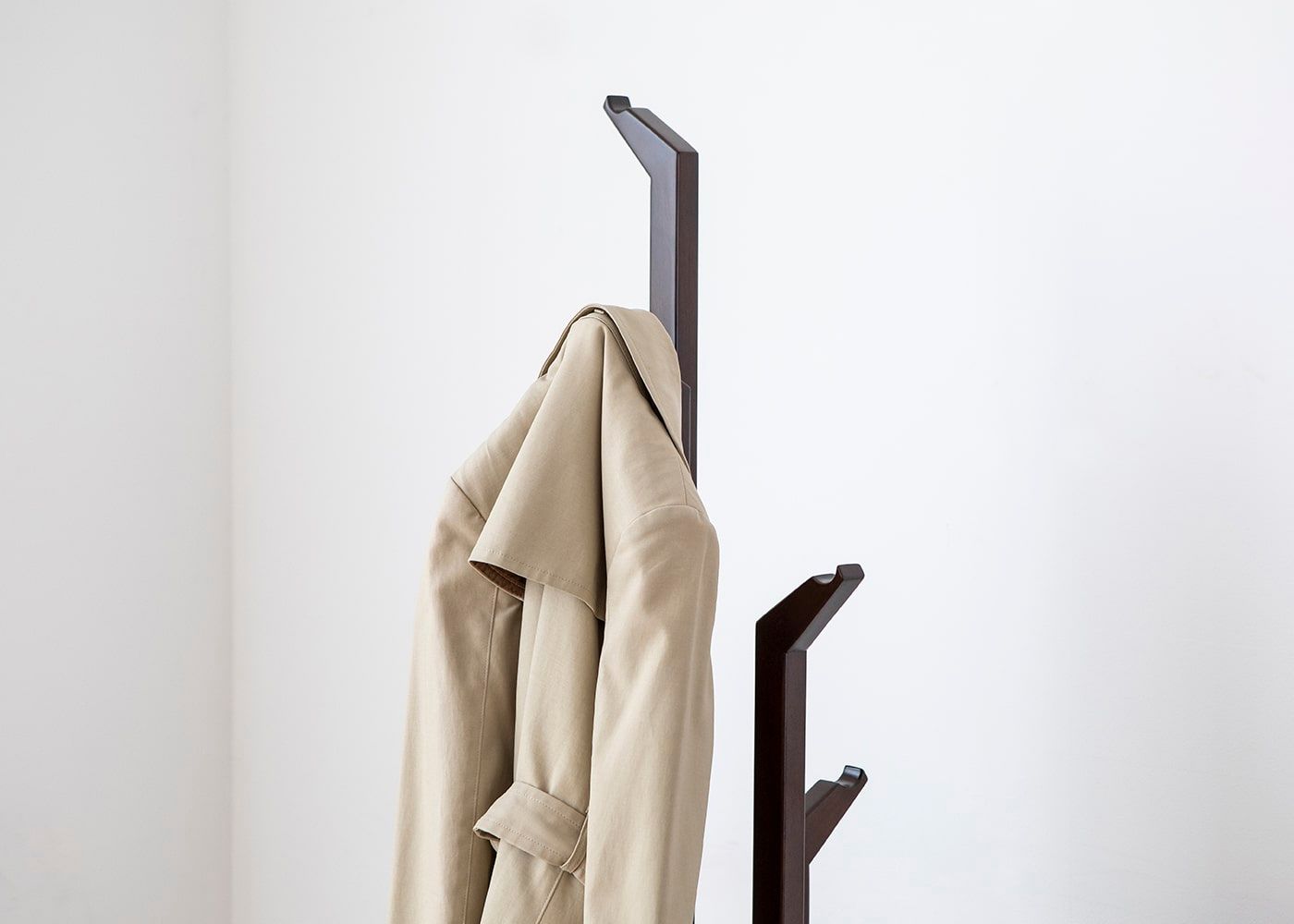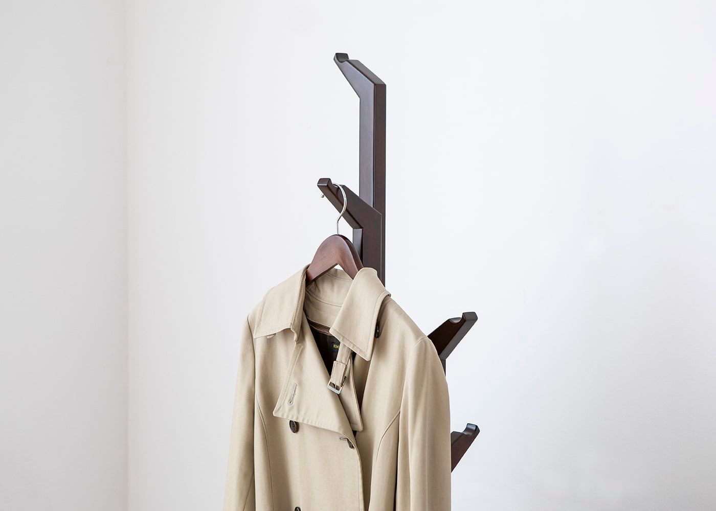 オブジェのようなユニークなデザインが心惹かれるコートハンガー。コートや帽子、バッグなどをさっと掛けてさっと持ち出せる気軽さが魅力の収納家具です。