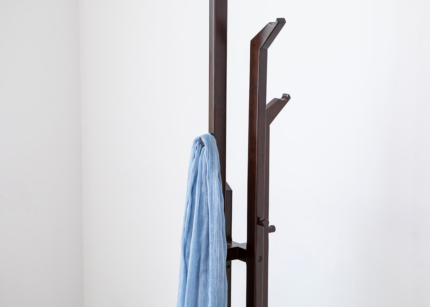 高さ160cmのコートハンガーは、女性でも使い易いちょうど良い高さです。外から帰ってきてさっとストールを掛けられる実用性の高さも特長です。(モデルは身長167cmの女性)