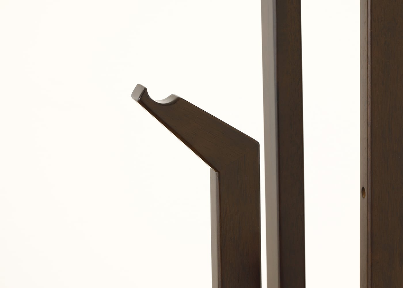 各フレームの先端にフックを設けました。洋服のハンガーを掛けたり、直接コートや帽子などが掛けられる便利なフックです。