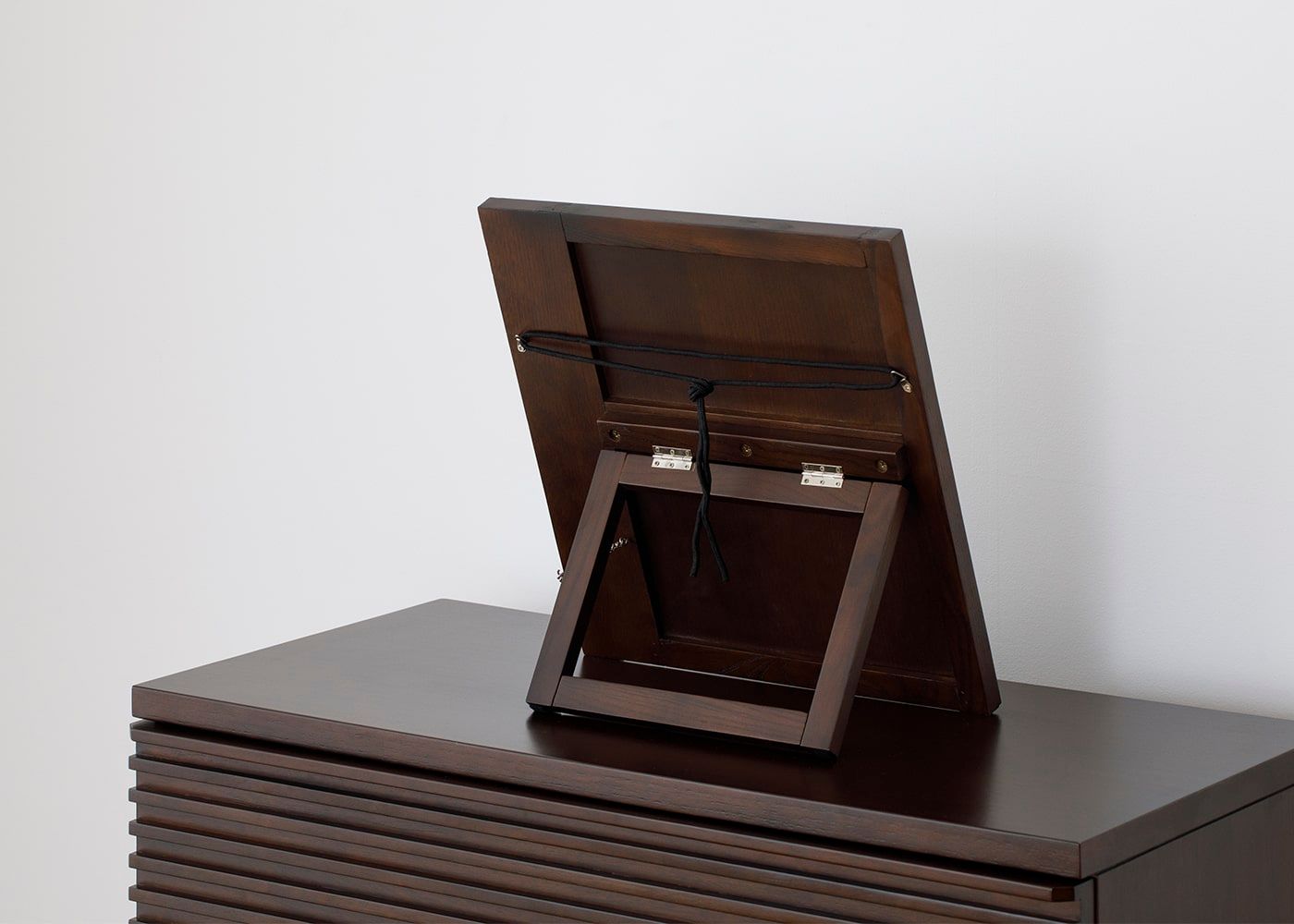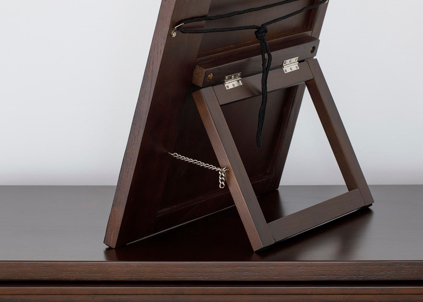 付属の吊り金具と紐を使って壁掛けミラーとしても使用できます。「置く」「掛ける」の2通りで使えるミラーです。