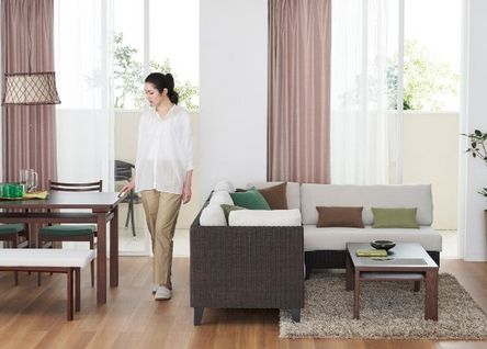 「ゆとりある生活動線の実現」と「様々な座りかたで寛げる」を追求したラン・コンパクトソファのv02セット。