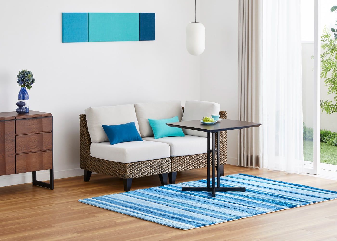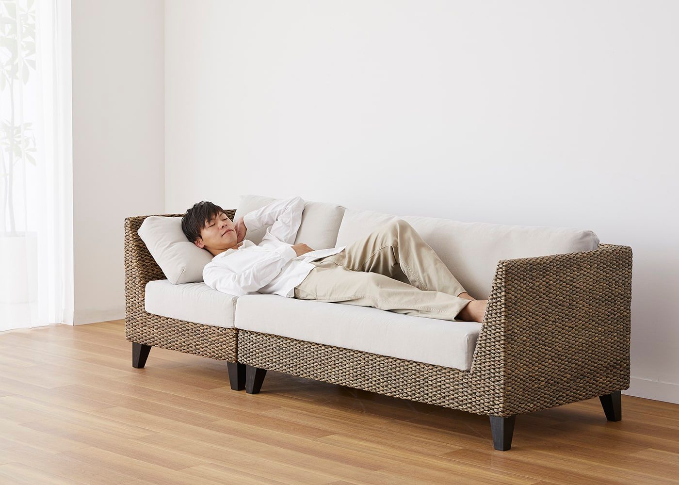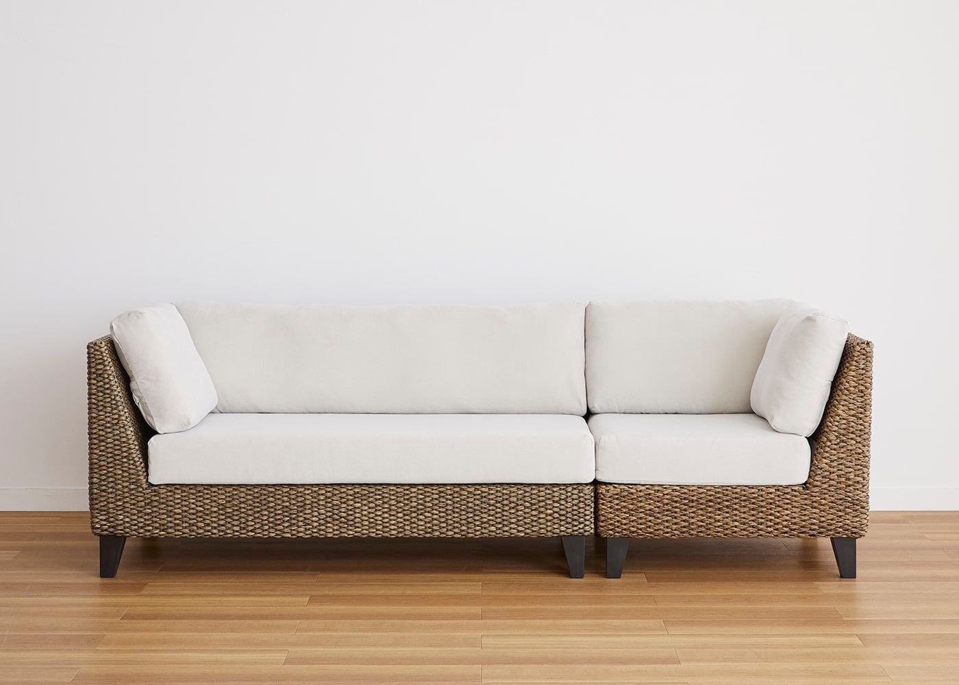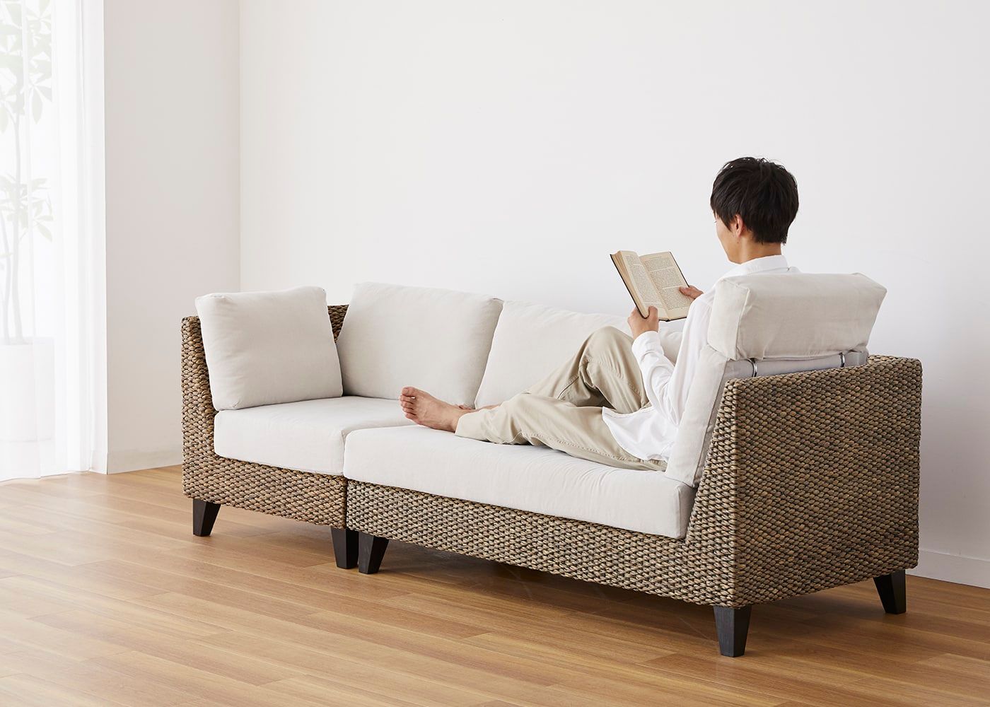 コーナーがあるセットのため、将来的にL字のコーナーソファに拡張したい方におすすめです。省スペースでも置けるコンパクトサイズとヒヤシンスの素材感が魅力の、アジアの風を感じさせるソファです。